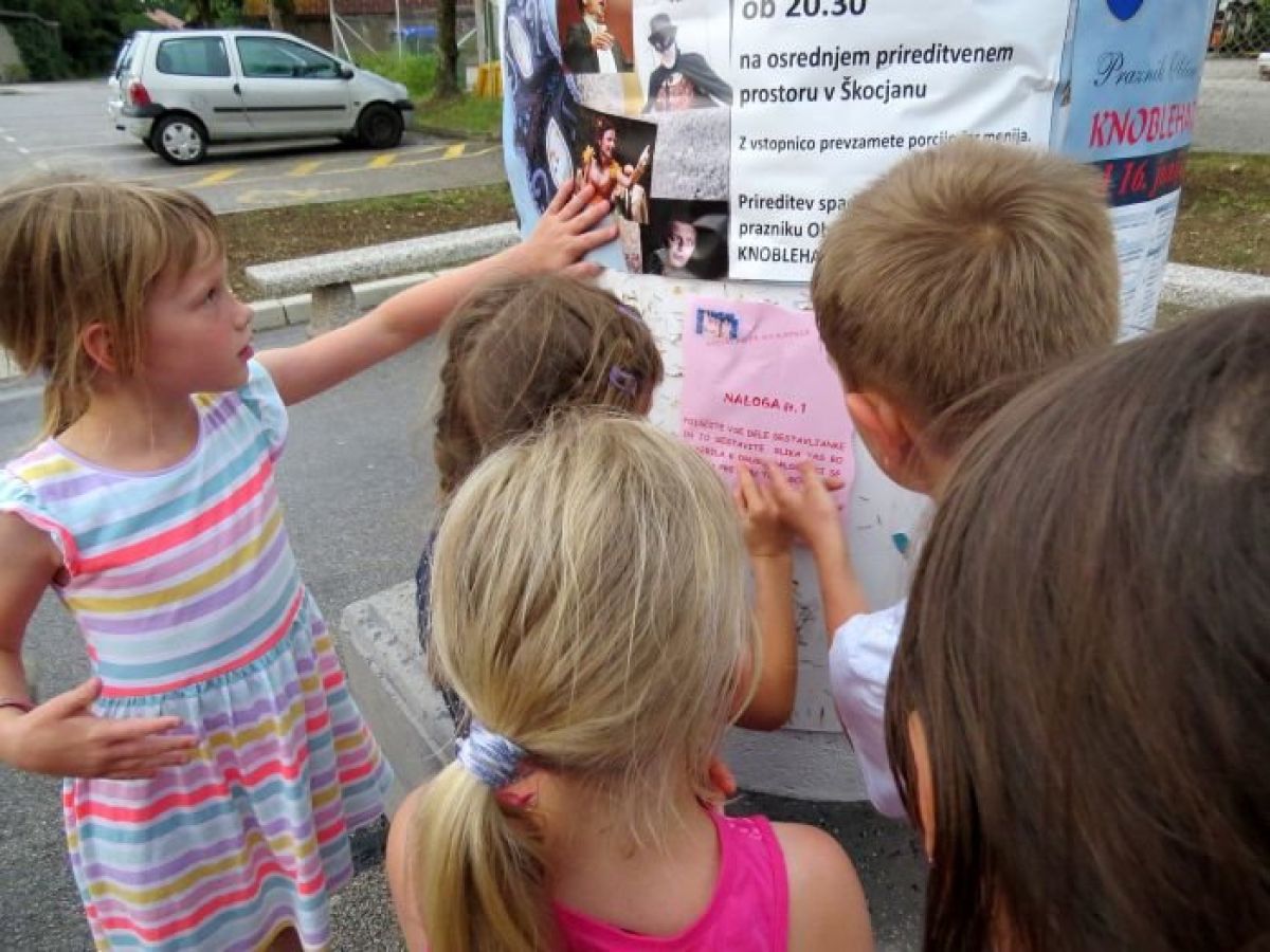 Ti so se zvečer, potem, ko je popoldne tudi Škocjan zajela nevihta, zbrali v knjižnici. Polni zagona in pričakovanja so najprej prebrali pravljico Lov na zaklad, potem pa se je začelo zares - iskanje skrivnega zaklada po skritih namigih, ki so jih dobili na različnih točkah po Škocjanu.