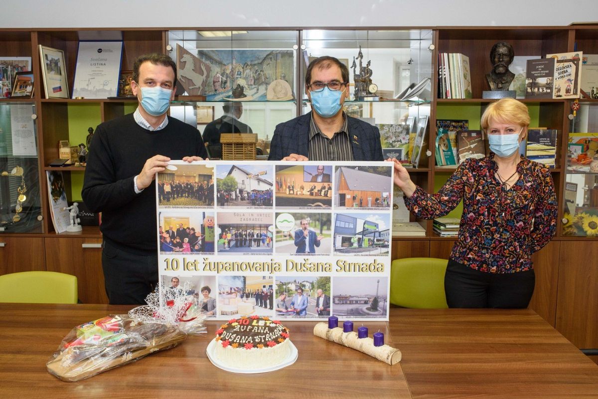 V trajen spomin ga je razveselil s kolažem fotografij nekaterih pomembnejših občinskih projektov v obdobju njegovega županovanja v letih od 2010 do 2020, pustil pa mu je tudi nekaj slastnega za pokušino.