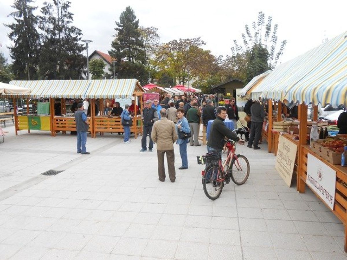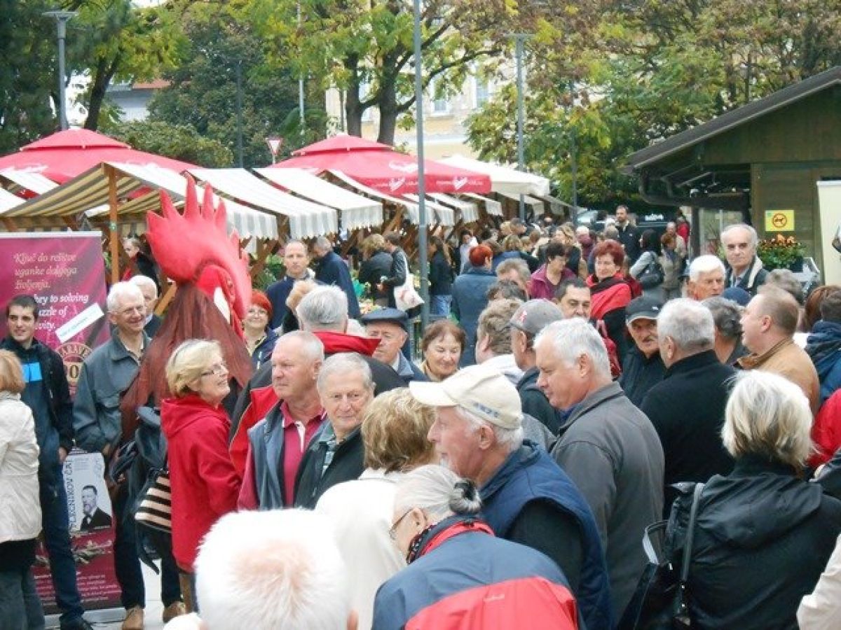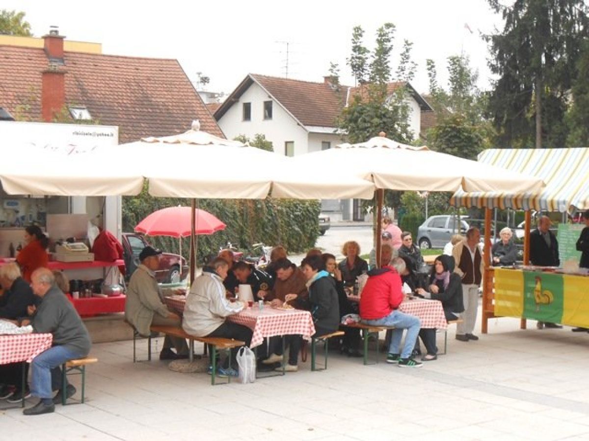 Kljub turobnemu vremenu je bilo na domžalskem tržnem prostoru nadvse živahno. Dišalo je po šentjernejskih dobrotah s stojnice Društva kmetic Šentjernej. Po samem tržnem prostoru pa se je bahavo in veličastno šopiril šentjernejski petelin, ki je vnesel pravi nemir na domžalsko dvorišče. Domžalske stojnice so bile polne šentjernejskih dobrot. Herba Gallus zelišča je obiskovalcem ponudila Plečnikov čaj, ki ga je mogoče kupiti samo v lekarnah, Plečnikov brinjevec in grenčico, nabaviti pa je bilo možno tudi repliko skodelice, kakršno je uporabljal Plečnik ob pitju čaja. Lončarski atelje Polde se je predstavil in seveda ponudil v nakup veliko raznoraznih lončarskih izdelkov za uporabo v gospodinjstvu, pa seveda tudi precej okrasnih izdelkov iz gline, na čelu s Šentjernejskim petelinom. Vina iz Kleti Štemberger je ponudila dobro vinsko kapljico različnih sort, prevladoval pa je seveda cviček. Mesnine Kmetije Košak so vabile s stojnice s svojim izgledom in vonjem, zato so njihove mesnine vse pošle. Obiskovalci so bili navdušeni nad tlačenko, suhimi klobasami, rebrcami, kračami in dolenjskim želodcem. Kmetija Karlovček je imela v ponudbi veliko sort jabolk, jabolčni kis, bučno olje, marmelade, jabolčni sok, korenčkov sok. Kartuzija Pleterje je imela v ponudbi odlično viljamovko, jabolka, zeliščne grenčice, brinjevec in vina. Članice Društva kmetic Šentjernej pa so svojimi pecivi, poticami, piškoti, štruklji in peko ocvrtih kruhkov poskrbele za prava sladka doživetja. Dogodka sta se udeležila tudi župan Občine Domžale, Toni Dragar ter idejni vodja prireditve "Dobrodošli v Domžalah", Vido Repanšek. Za dobro razpoloženje je poskrbel domači harmonikar Tone Malenšek, ki je lepo raztegoval svoj veseli meh in iz njega izvabljal odlične melodije, Janez Hafner pa se mu je na koncu pridružil še s svojo tradicionalno glasbeno spremljavo, pladnjem za pijačo, stolom ter kuhalnicami. Na odru pa seveda ni manjkal Šentjernejski oktet, ki je zapel nekaj odličnih slovenskih pesmi. Ves čas pa se je okoli množice obiskovalcev sukal Šentjernejski petelin in vzbujal pozornost. Dogodek sta povezovali v imenu Občine Šentjernej Anita Petrič in Tanja Vidic Goršak v imenu Občine Domžale.