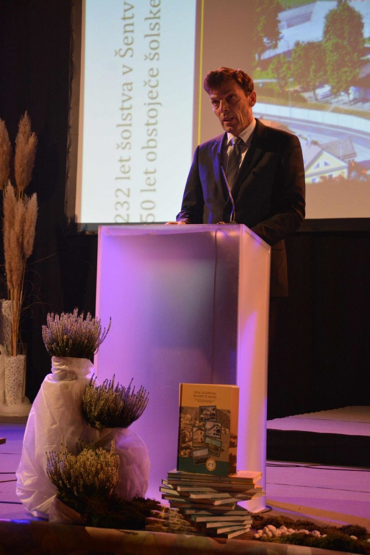 »Šola ima besedo! Osnovna šola Ferda Vesela praznuje in z njo praznujemo vsi, ki smo s šentviško šolo tako ali drugače povezani. Praznuje 232 generacij, ki so obiskovale našo šolo«, je z zbranimi besedami prisotne v športni dvorani nagovoril ravnatelj šole Janez Peterlin ter v nadaljevanju dejal, da je šentviška šola tesno povezana s krajem, s celotnim šolskim okolišem, s krajevnim društvenim življenjem in tudi z Občino Ivančna Gorica. »Vse od daljnega leta 1784 pa do danes so njeni pedagogi in učenci skrbeli za pestro in raznoliko dogajanje v kraju. Zasluge za to imajo tudi ravnatelji, starši, krajani in vsi drugi kakor koli povezani s šolo. Šola je središče kraja, kraju daje življenje, utrip in prihodnost, zato je prav, da se tega dobro in ves čas zavedamo, da šolo podpiramo ter jo spodbujamo v njeni ustvarjalnosti in inovativnosti. V današnjem svetu je izobrazba ena izmed najbolj cenjenih vrednot – sodobni otroci se tega večinoma ne zavedajo, dokler ne odrastejo in ne prevzamejo svojega deleža odgovornosti v družbi in osebnih življenjih«.