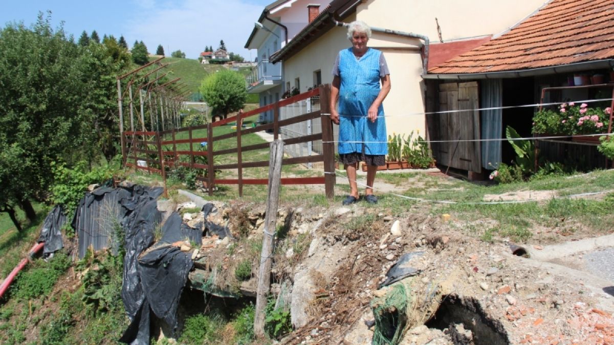 V besedah 78-letne Alojzije Kmetec iz Repišč je čutiti zadovoljstvo, da se bo plaz pod njihovo domačijo po dolgih letih negotovosti saniral in bo spanec mirnejši. Odkar je sila vode potisnila pobočje hriba pod hišo in gospodarskim poslopjem v grabo, je minilo že celo desetletje. Družina si je pomagala, kot je pač zmogla: napeljali so začasne odvodne in drenažne cevi ter pobočje zasadili z drevesi, vendar vse to drsenja zemljine po griču navzdol ni ustavilo. Kmetčeva je povedala, da z meteorno vodo, dokler je bila cesta makadamska, niso imeli težav. „Ko so položili asfalt, se je začela voda stekati na naše dvorišče in po pobočju pod njim. Vodo smo poskušali ukrotiti, da ne bi povzročila škode, a ni šlo. Leta 2011 se je pod drvarnico sprožil plaz.“