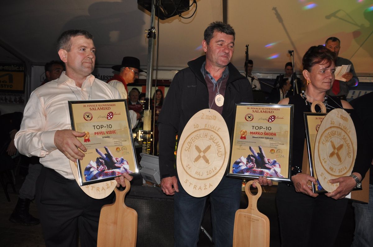 Po odlični glasbi je sledila svečana razglasitev rezultatov in podelitev priznanj najboljšim desetim salamarjem. Najboljšo salamo je po prepričanju strokovne komisije izdelal domačin Pavle Vidic, sicer tudi predsednik Turističnega društva Straža, ki je bil glavni organizator prireditve. Salama Pavla Vidica, ki je postal državni prvak, je prejela oceno 52,7 točke. Na drugo mesto se je uvrstil Marko Škoda iz Šmarjeških Toplic z oceno 52,5, tretji je bil Janez Majcen iz Šmarij pri Jelšah, ocena 51,7. Prvi trije salamarji so prejeli tudi pokale.