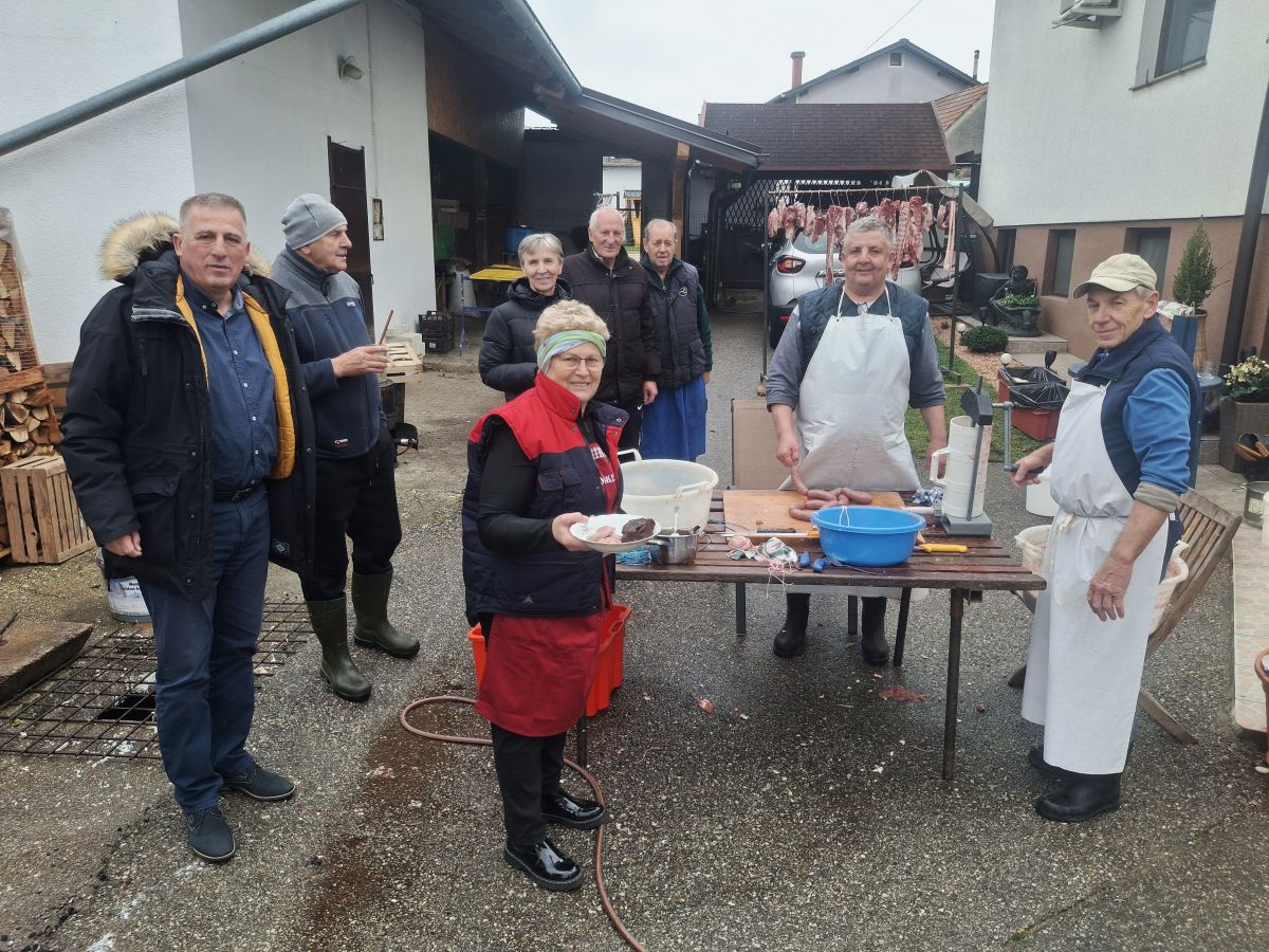 Tudi sobota, ko so pogostili še celotno vas, je bila zelo pestra. Kuharica Ana je bila s svojimi pomočnicami aktivna že od jutra. Pravo tradicionalno kosilo z juho, domačimi rezanci, praženim krompirjem, pečenko, krvavicami, pečenicami in vsem drugim, kar spada zraven, je bilo odlično. Gostitelji srečni, gostje nadvse zadovoljni.