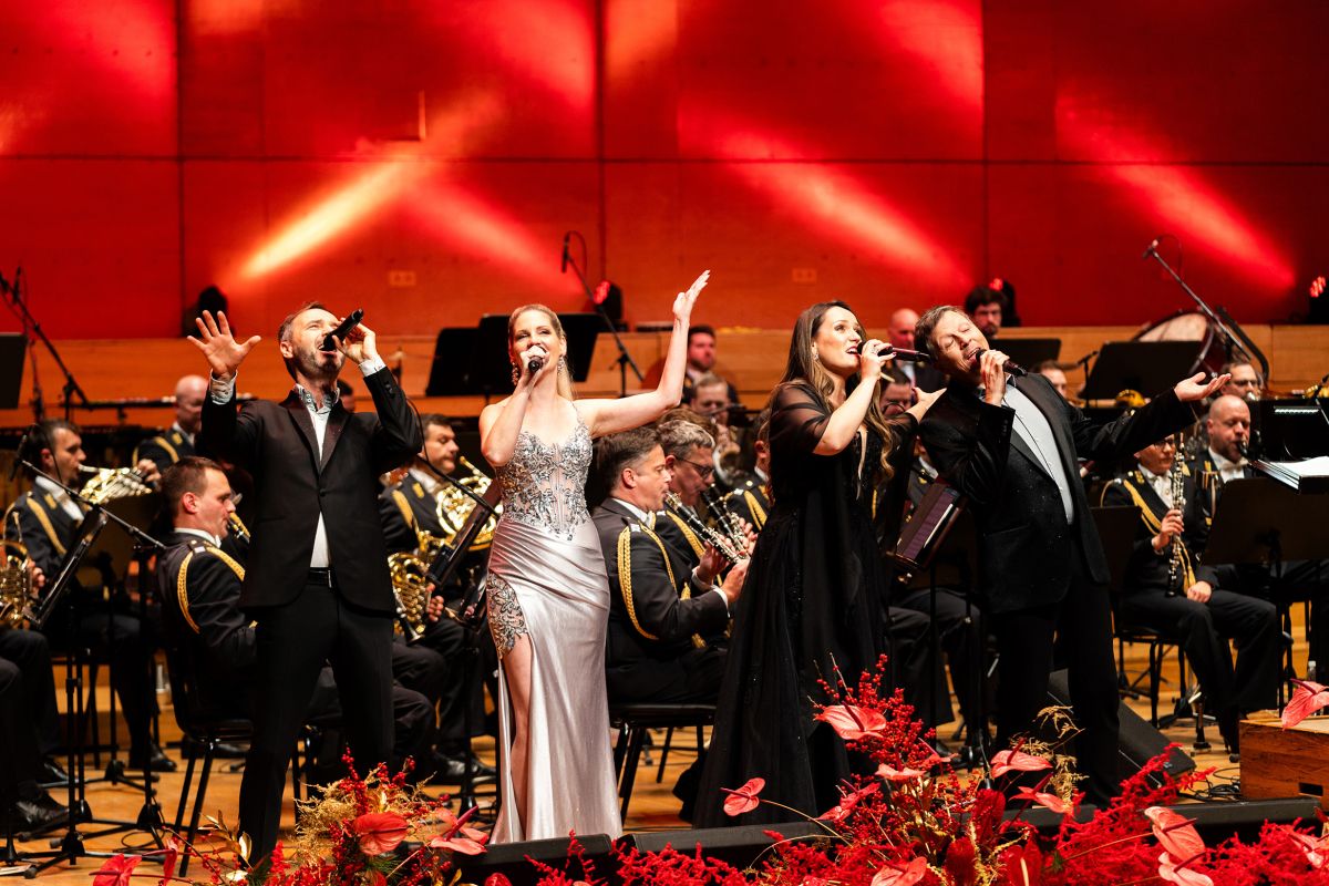 Večer je z izborom priljubljenih simfoničnih in baletnih del začel orkester Slovenske vojske, ki bo v letu 2026 praznoval 30. obletnico, osrednji del koncerta pa je bil nastop z Vox Arsano. Skupaj so se z novimi priredbami poklonili najlepšim melodijam slovenske popevke ter svetovnim božičnim uspešnicam, je povedal Mladen Delin.