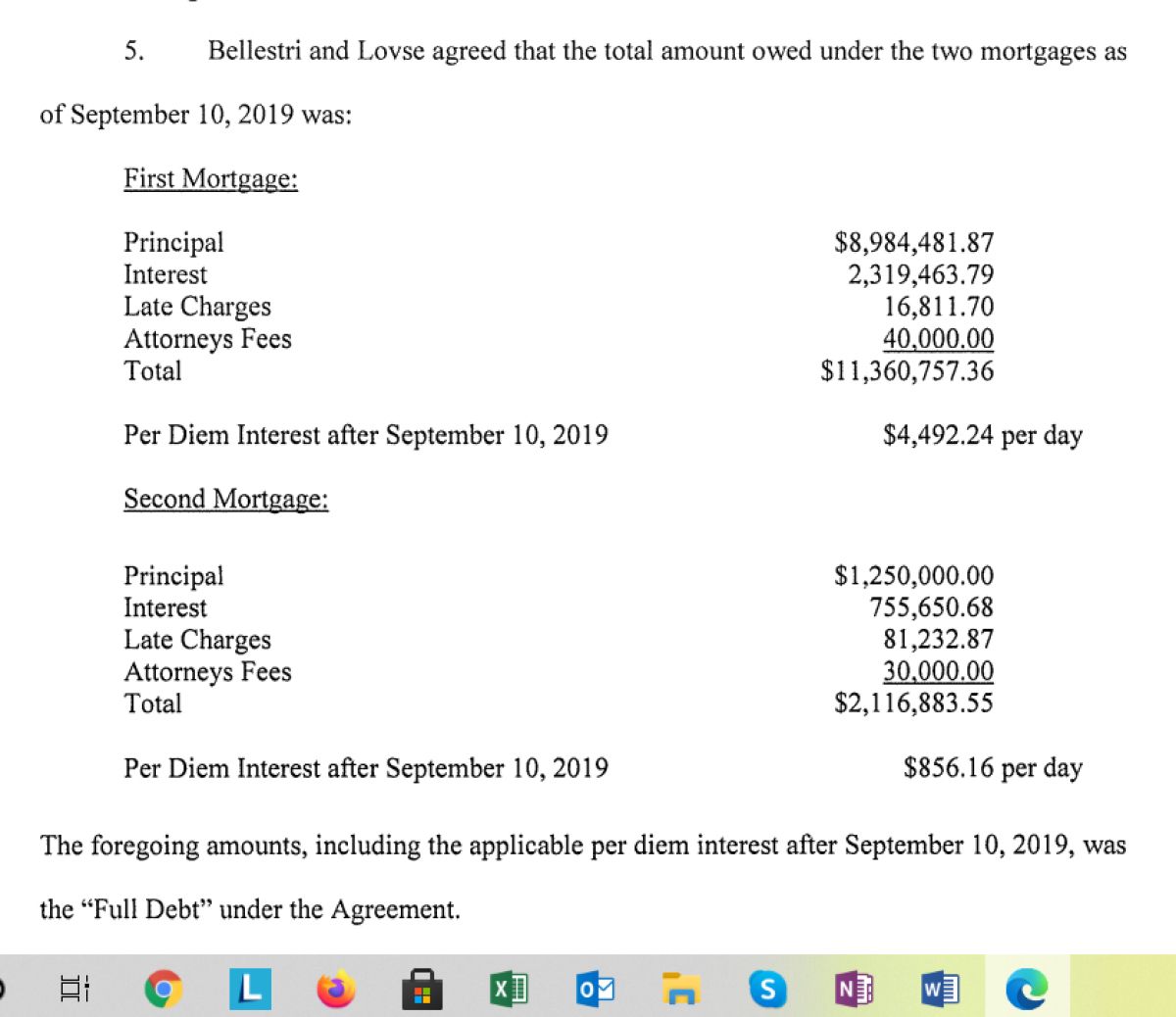 Iz dokumentov je razvidno, da bi moral Lovše do februarja 2020 poplačati za 12,8 milijona dolarjev posojil in obresti v višini 2666 dolarjev na dan. Sodišče je zato ugotovilo, da je Lovše v bankrotu. Ker je sporazum o poravnavi prenehal veljati, je skupni Lovšetov dolg narasel na 14,3 milijona dolarjev. Vilo je nato na sodni dražbi kupil Bellestri. Potem ko je od tržne vrednosti vile odštel dolgove, je Lovšetu plačal – sto dolarjev. Za primerjavo: še pred leti je Lovše vilo poskušal prodati za najmanj 19 milijonov dolarjev.