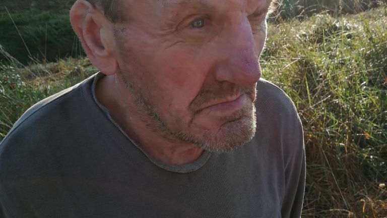 Moški je star med 60 in 70 let, visok okoli 165 cm, suhe postave, neobrit, ima krajše rjavkaste lase, spredaj je plešast. Oblečen je v majico z dolgimi rokavi sive barve, temne hlače iz blaga, obut pa v bele razpadajoče športne copate.
