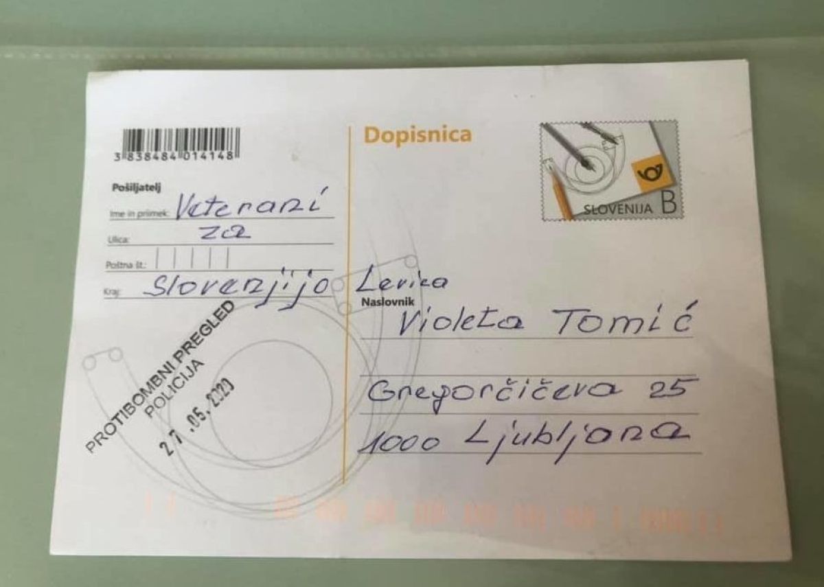 Kot rečeno, nam je Tomičeva včeraj v telefonskem pogovoru povedala, da bo danes vložila kazensko ovadbo zoper pošiljatelja: »Veste, da je to ista pisava kot v pismu, ki sem ga prejela lani. Ista forma, ista dopisnica. Imela sem jo nalepljeno na omaro, kot dokaz, kakšna nestrpnost je. Takrat nisem podala predloga za pregon.« »Veterani so mi pisali, da oni nikakor niso to pošiljali, da je nekdo zlorabil njihovo ime in naj se v prihodnje kar sam podpiše. Veterani me podpirajo, pravijo, da se niso borili za takšno Slovenijo,« je še povedala in opozorila na slovnične napake v besedilu: »Pišejo slovenjijo. Popolnoma nepismeno. To so naši veliki patrioti. Katastrofa.«