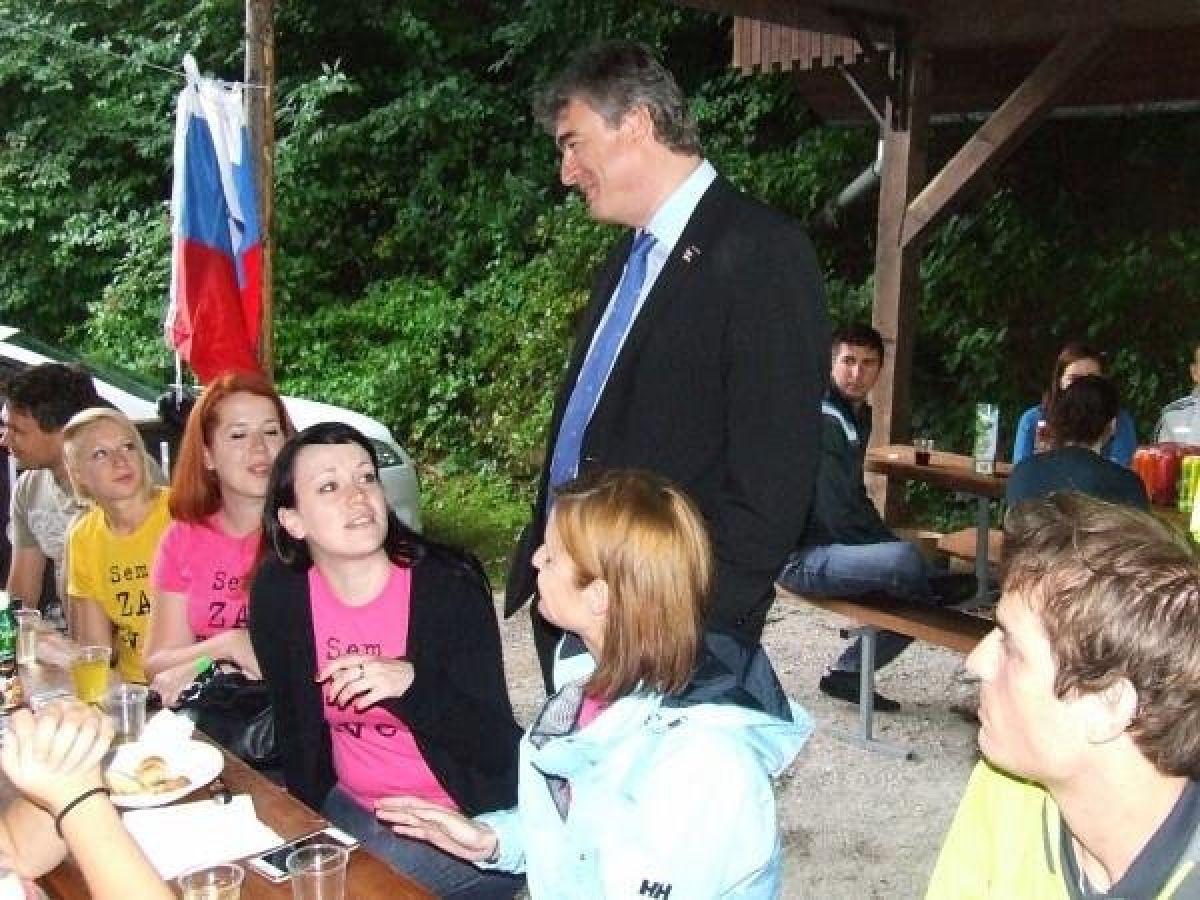 Zvečer pa je sledil vrhunec poletnega tabora, saj nas je obiskal predsedniški kandidat SDS in NSi dr. Milan Zver. V svojem nagovoru je pozdravil odločitev predsednika vlade in predsednikov vseh parlamentarnih strank, da se bodo jeseni nadaljevali pogovori za vpis zlatega fiskalnega pravila v ustavo. Zahvalil se je vsem »zverinicam«, ki z dobro organizirano kampanjo skrbimo za njegovo prepoznavnost in nas spodbudil k zagnanosti tudi v prihodnje, saj ob takšni aktivnosti, tudi rezultat ne more izostati. Po druženju smo skupaj odšli pod prireditveni šotor v center Dolenjskih Toplic, kjer se je ob prazniku občine odvijala Topliška noč.