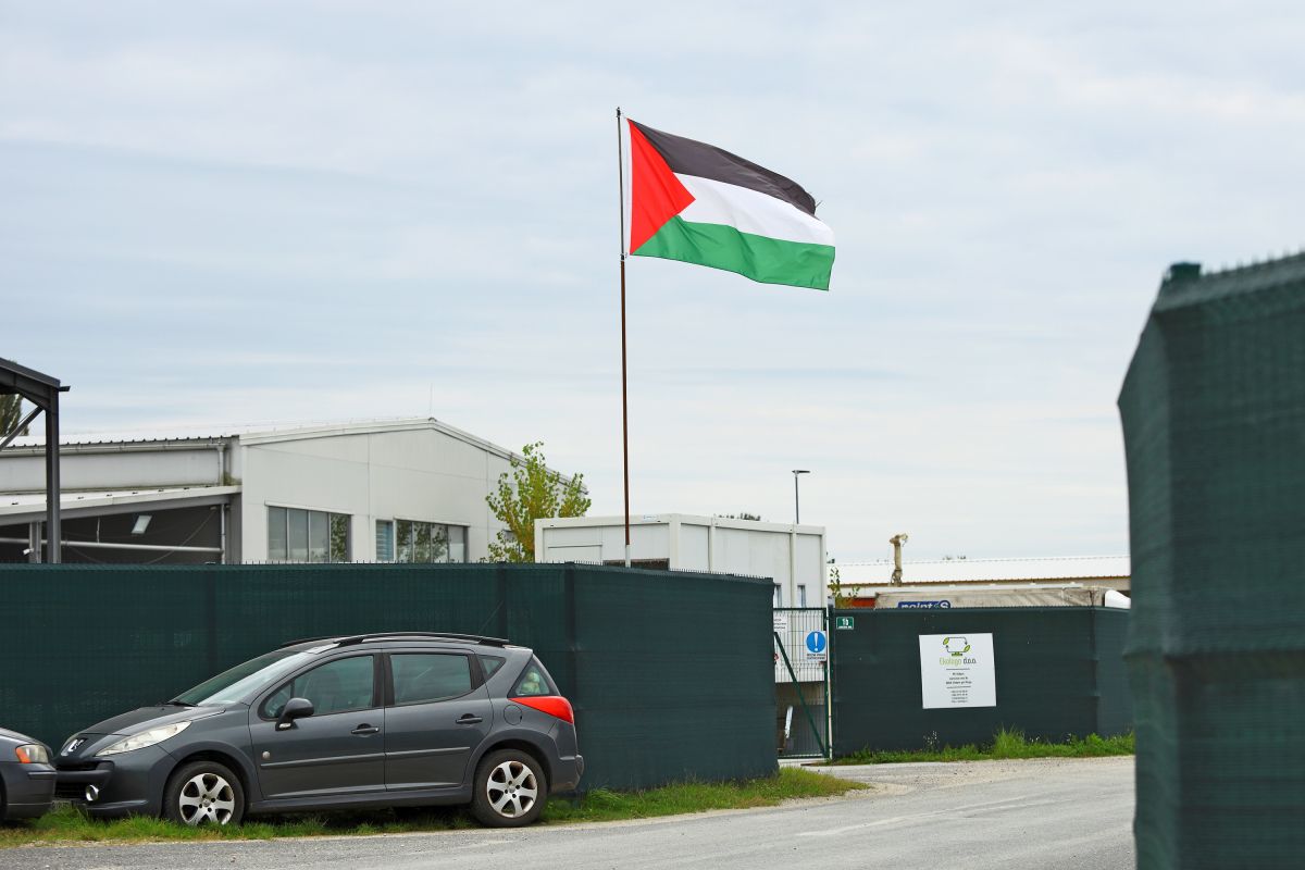 Izobešena palestinska zastava v podporo ljudem, ki trpijo vojno in genocid, že od poletja plapola v industrijski coni občine Videm.