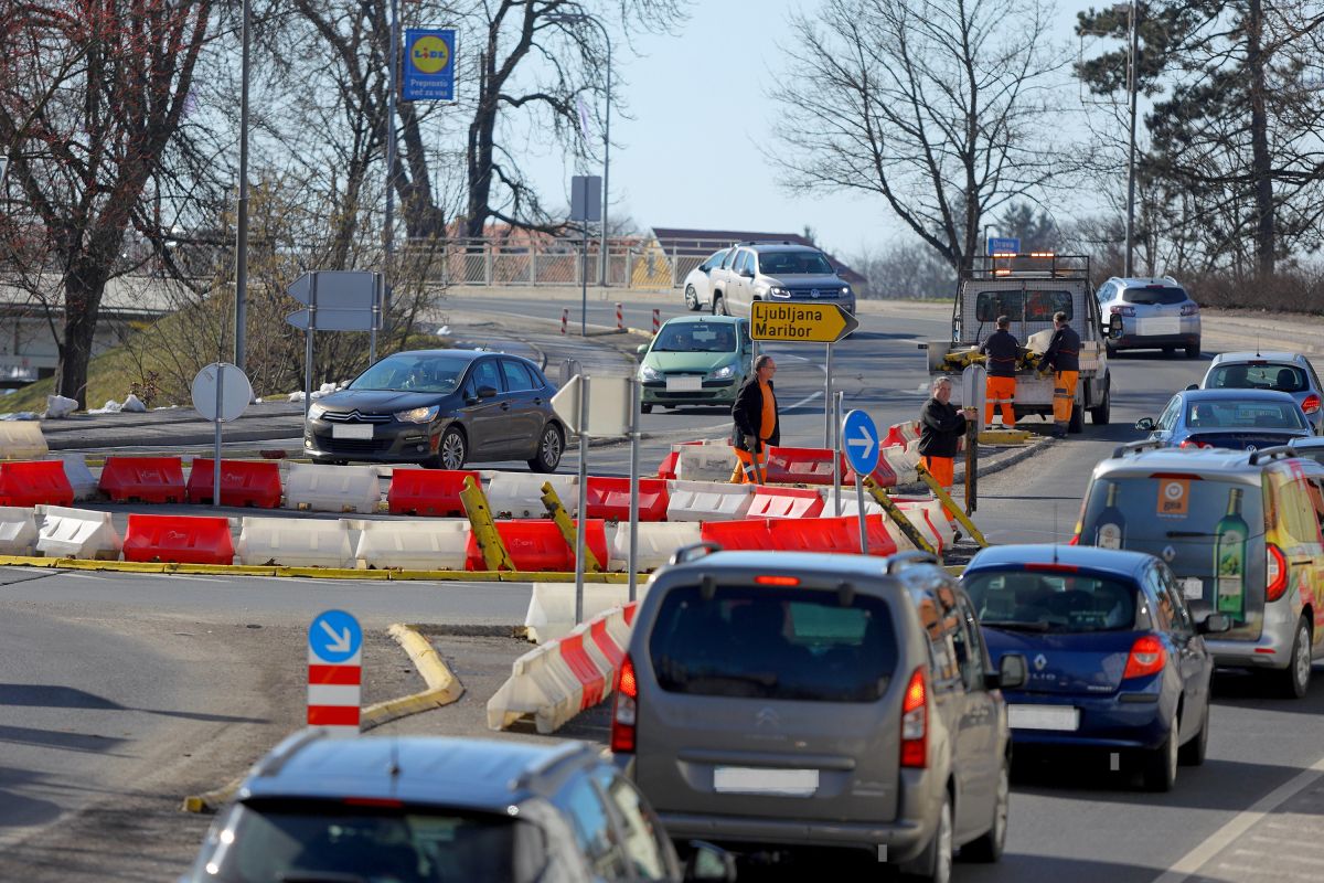 Delavci Cestnega podjetja danes na Ptuju popravili polomljeno krožišče