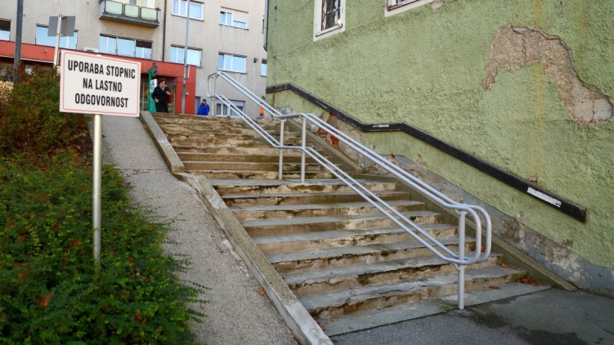 Ptuj: Dotrajane stopnice pri lekarni sredi mesta