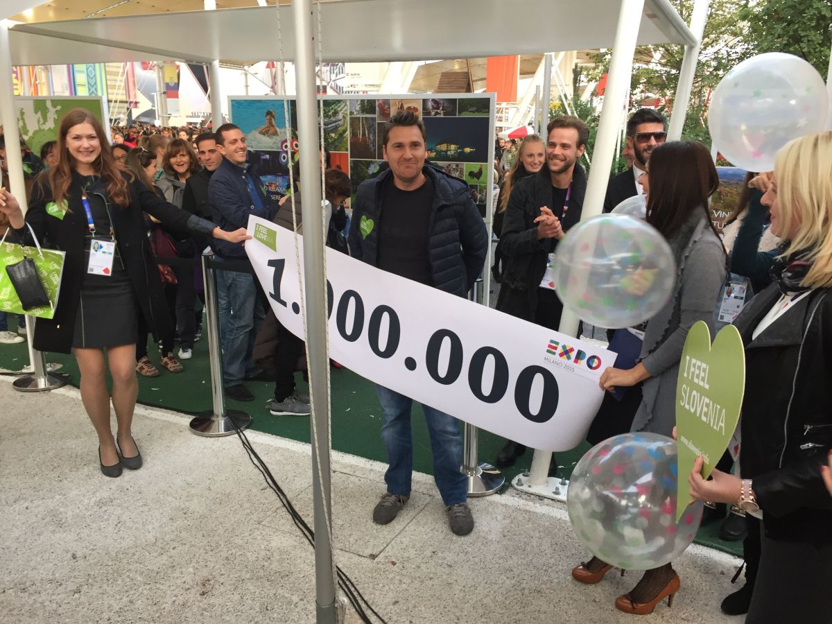 Slovenski paviljon na svetovni razstavi Expo 2015 v Milanu je v torek ob 17. uri obiskal milijonti obiskovalec Marco Rota iz Milana s svojo ženo Clelio. Predstavniki paviljona so častnega obiskovalca obdarili z bogatim tedenskim obiskom Slovenije. Slovenski paviljon po zadnjih podatkih dnevno obišče 7.100 obiskovalcev. Večino obiskovalcev paviljona predstavljajo italijanski državljani (80 odstotkov), sledijo francoski državljani. Za vstop v slovenski paviljon se podobno kot v drugih paviljonih čaka in sicer eno uro.