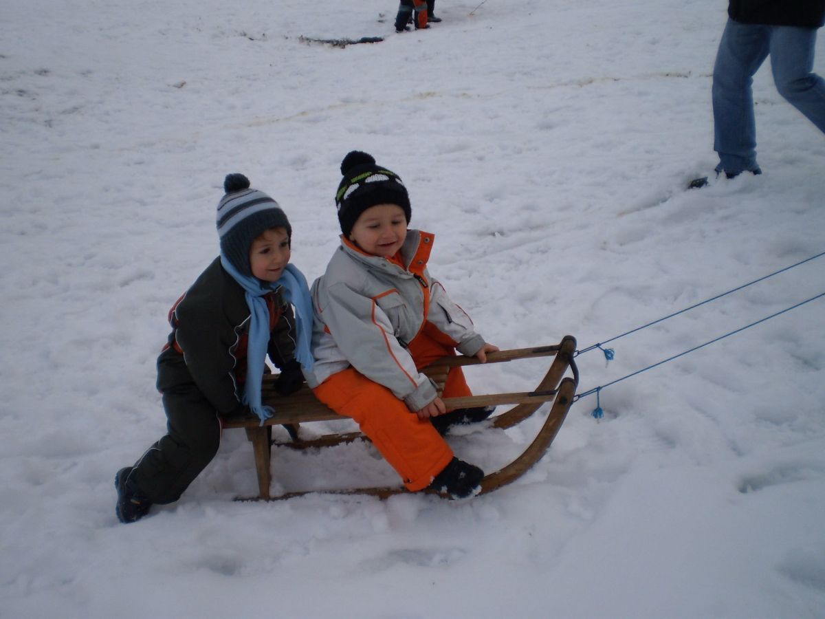 Breg v beltinskem parku je zasnežen, otroci pa se že veselijo zimskih radosti.