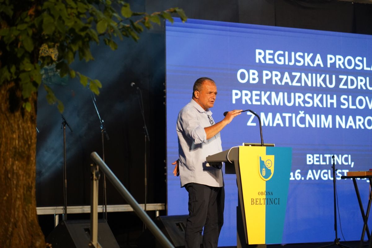 Dodal je, da se danes morda ne borimo za svoj jezik in meje, ampak za preživetje v svetu. "Prekmurje ne potrebuje daril iz centra države, potrebujemo zgolj in samo enake pogoje. Potrebujemo, da najprej sami postanemo čim bolj enotni. Tu nas čaka še veliko dela in zato nam ni kriv nihče drug, kot mi sami," je dejal in izzval aplavz prisotnih. Nadaljeval je, da smo Prekmurci vedno znali živeti skupaj. "Zavedamo se, da brez jezika in kulture ni identitete. Zato bomo še naprej ponosno gučali po prekmursko, pa če je to komu všeč ali ne," je dejal v narečju.
