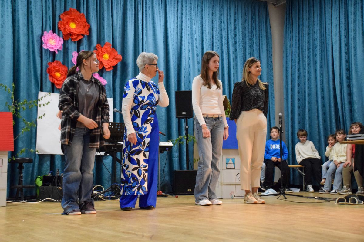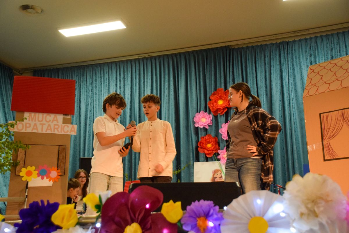 Nato se je program nadaljeval z dramatizacijama priljubljenih zgodb Trije metulji in Muca Copatarica. "Manjši in večji Sončki so se izkazali z igralskim talentom, ustvarjalnostjo in pogumom ter dokazali, da se v njihovih vrstah skrivajo pravi mali umetniki." Otroška skupina je tudi deklamirala in pela ter izražala hvaležnost, ljubezen in spoštovanje, ki jih čutimo do žensk. "Vsak nastop je bil zgodba zase, prežeta s čustvi in toplino," sta dejali. Mladi černelavski trobentač je imel glasbeni vložek, ki je pobožal ušesa, omehčal vsa srca in pobožal dušo obiskovalk.
