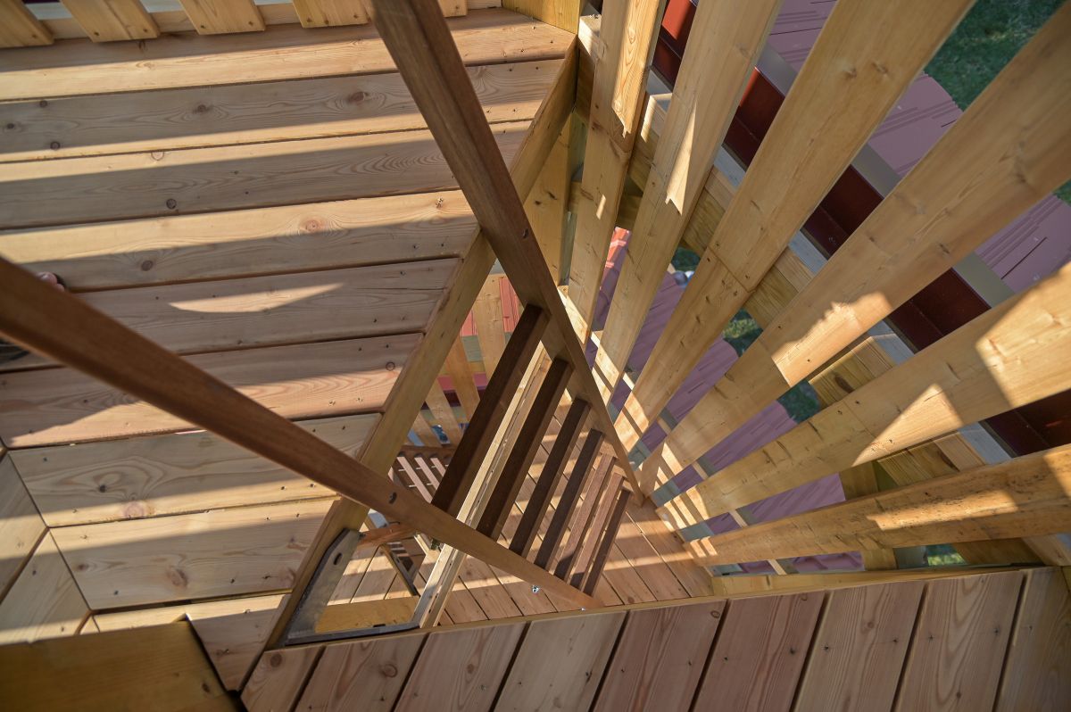 Nov stolp je sestavljen iz nosilne betonske plošče in lesene konstrukcije, izdelane iz smrekovega in macesnovega lesa, ki je bila po delih izrezana v Celju na računalniško vodenem stroju, kasneje so vse dele v Ljubljani tudi impregnirali.