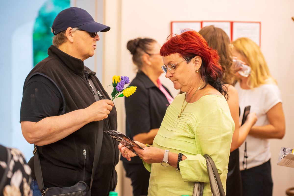 Razstavljene so rože iz kreppapirja, ki jih izdelujejo Marija Križanič, Iluska Doncsecz in Iluška Časar Dončecz