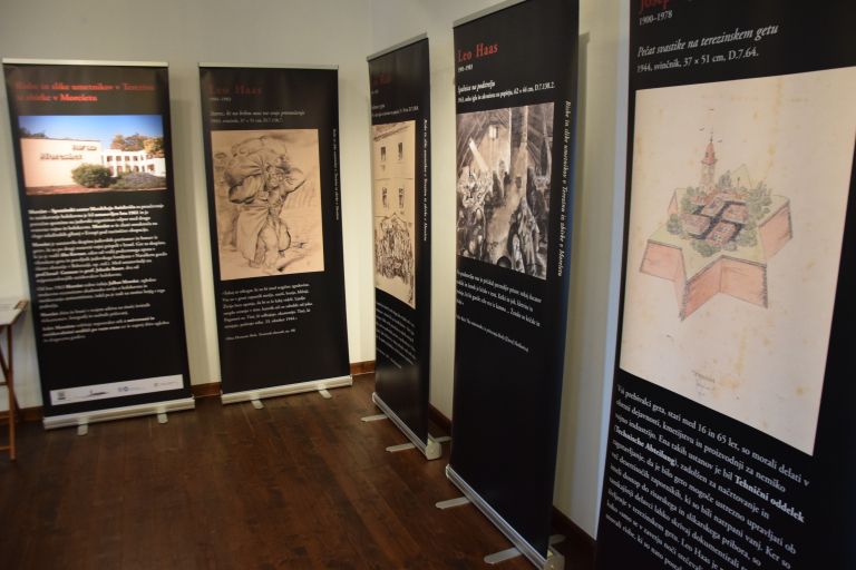 Prva razstava, kot pove že njen naslov, predstavlja risbe in slike umetnikov, ki so bili zaprti v getu v Terezinu (nemško Theresienstadt). Zbirko umetniških del hrani Morešet – Spominski center Mordehaja Anieleviča iz Izraela, ki se ukvarja s preučevanjem in raziskovanjem holokavsta. Iz zbirke so na razstavi v sinagogi izpostavljeni samo trije umetniki, to so nemški Jud Leo Haas, nizozemski Jud Joseph Eduard Adolf Spier in Bedřich Fritta, češki Jud. Med Haasom in Fritto obstaja zanimiva povezava, namreč Fritta vojne ni preživel, za njim je ostal sin Tomaš, ki ga je nato posvojil Leo Haas.
