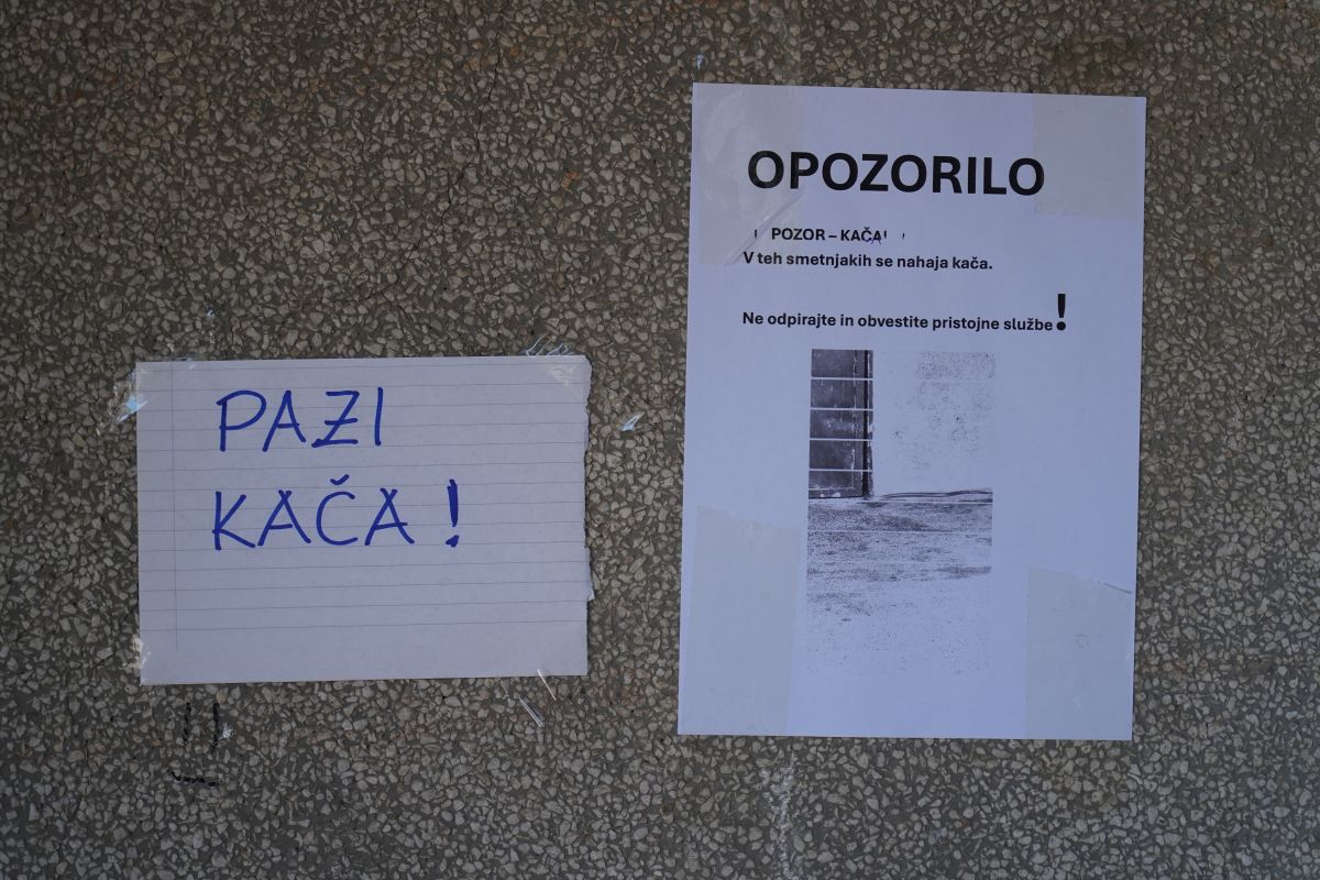 V začetku preteklega tedna se je na zidu enega od stanovanjskih blokov v Zvezni ulici v Murski Soboti pojavil list papirja, na katerem je bilo z roko zapisano 'Pazi, kača'. Zraven je bil še en list, na katerem je bila tudi fotografija kače, ki se plazi skozi luknjo vrat kolesarnice oziroma smetarnice. Blizu je stal smetnjak za biološke odpadke, ob njem pa je bilo zapisano, v teh smetnjakih je kača, ne odpirajte in obvestite pristojne službe. Fotografija je pri marsikom vzbudila nelagodje, pri tistih, ki imajo fobijo pred temi živalmi, pa pravi strah.