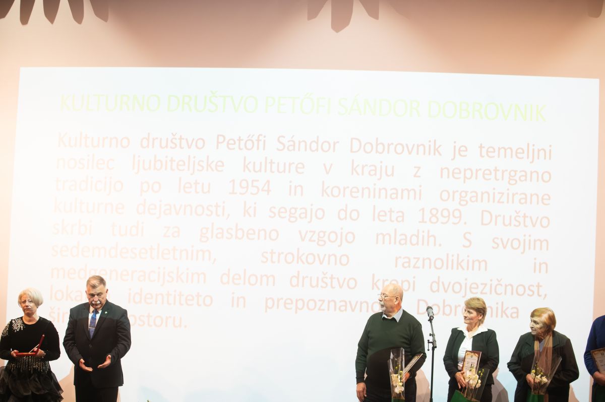 Plaketo občine so prejeli Kulturno društvo Petőfi Sandor Dobrovnik, ki skrbi za glasbeno vzgojo mladih, s svojim strokovnim in raznolikim medgeneracijskim delom pa že več desetletij krepi dvojezičnost, lokalno identiteto in prepoznavnost Dobrovnika, monsinjor Franc Režonja, ki je pustil izjemen pečat na duhovnem in družbenem področju v občini, s svojim delovanjem in sodelovanjem z lokalno skupnostjo pa je pomembno prispeval k razvoju kraja, ter Ladislav Bači za izjemen več desetleten prispevek k razvoju, prepoznavnosti in povezanosti kraja Žitkovci in celotne občine.