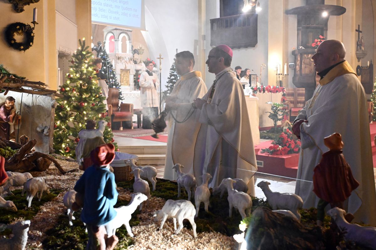 Kot spomin na Jezusovo rojstvo kristjani postavljamo jaslice, praznik pa zaznamujemo tudi z obiski polnočnice. To je v stolni cerkvi svetega Nikolaja v Murski Soboti ob polnoči daroval soboški škof Janez Kozinc, ki bo danes ob 10. uri opravil še božično sveto mašo.