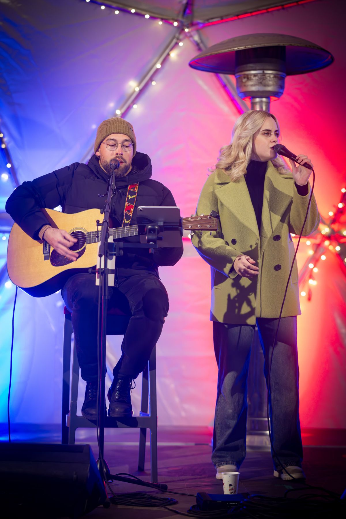 Glasbeni tandem, znan po nastopih z akustičnim pridihom in intimnim vzdušjem, je tudi tokrat navdušil z izrazito energijo in glasbeno občutljivostjo, ki je občinstvu pričarala prijetno praznično razpoloženje.