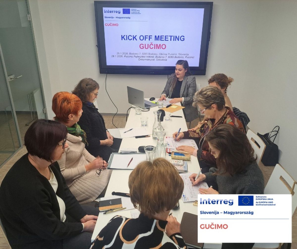 V prostorih Razvojnega zavoda Puconci v Bodoncih je januarja potekal uvodni sestanek čezmejnega projekta GUČIMO, ki se izvaja v okviru programa Interreg Slovenija–Madžarska. Srečanje je pomenilo uradni začetek 24-mesečnega projekta, usmerjenega v ohranjanje in promocijo narečne kulturne dediščine Prekmurja in Porabja.