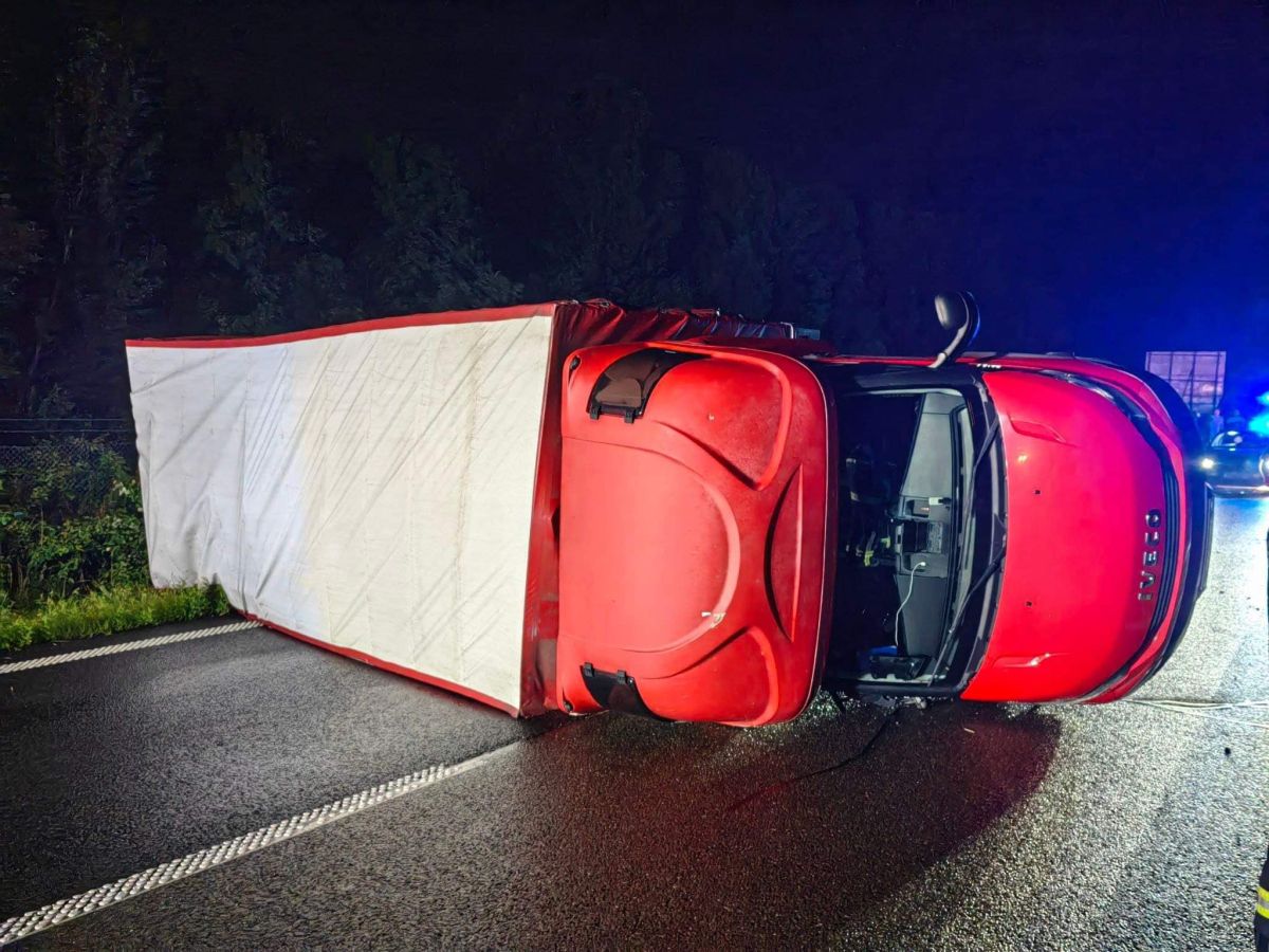 Pomurski policisti so bili zjutraj ob 2.20 obveščeni, da se je na pomurski avtocesti, približno kilometer in pol pred izvozom Turnišče, v smeri Murske Sobote, prevrnilo tovorno vozilo.