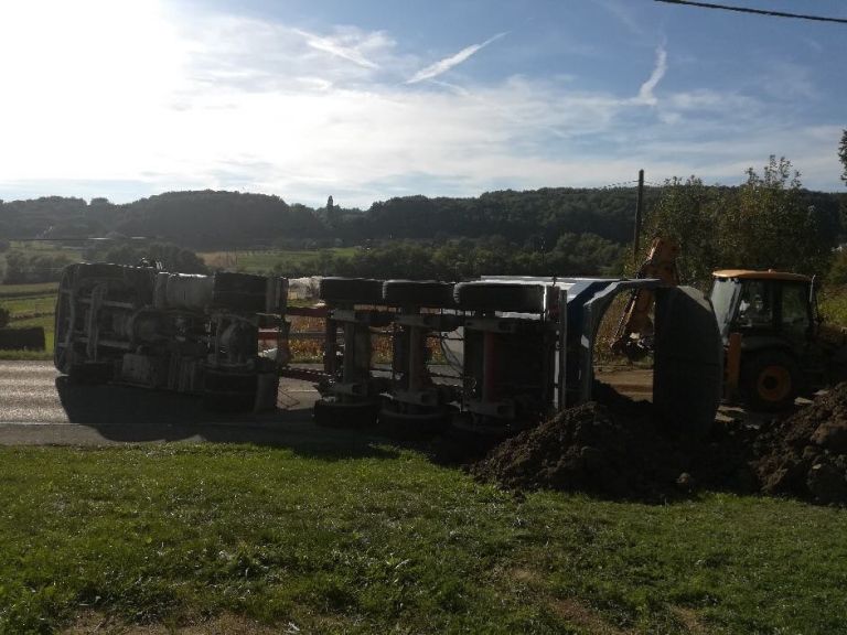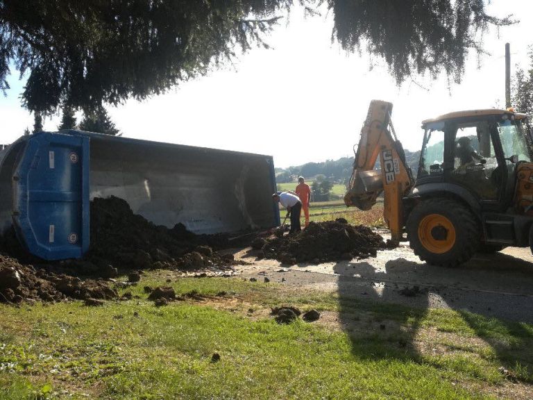 Težki tovornjak, ki je prevažal zemljo, se je prevrnil, cesta pa je zaradi dogodka bila nekaj časa zaprta v obeh smereh. Iz vozila, kot poroča Uprava za zaščito in reševanje RS, je iztekalo gorivo in olje. Posredovali so gasilci PGD Murska Sobota, zavarovali kraj dogodka, odklopili akumulator, z vpojnimi sredstvi počistili cestišče, odstranili odvečno zemljo in pomagali avtovleki pri postavitvi tovornega vozila na cesto.Poškodovan ni bil nihče.