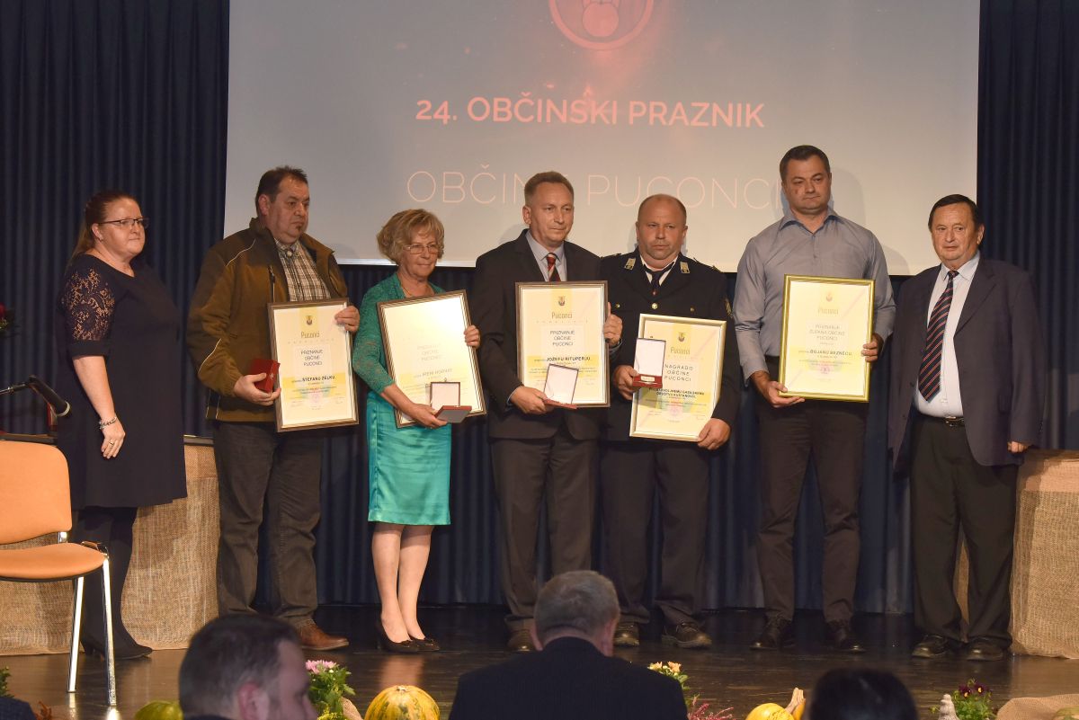Dolgoletni direktor Centra za ravnanje z odpadki Puconci Franc Cipot je letošnji prejemnik velike zahvalne listine. Ta mu je bila podeljena za izjemen prispevek k razvoju dejavnosti ravnanja z odpadki v regiji in s tem varovanja okolja ter za dolgoletno uspešno vodenje podjetja Cerop. Nagrado Občine Puconci v višini 500 evrov so za odlične rezultate na gasilskih tekmovanjih širom celotne Slovenije in promocijo občine prejele članice A Prostovoljskega gasilskega društva Bodonci. Priznanje župana pa je prevzelo Čebelarstvo Car iz Brezovec. Njihovi začetki segajo v devetdeseta leta, ko je z dejavnostjo pričel Karel Car, potem pa mu je pričel pomagati še sin Darko, danes predsednik Čebelarskega društva Puconci. Čebelarska družina je priznanje prejela za ohranjanje tradicije, ki je pomembna za kmetijsko pridelavo in okolje.