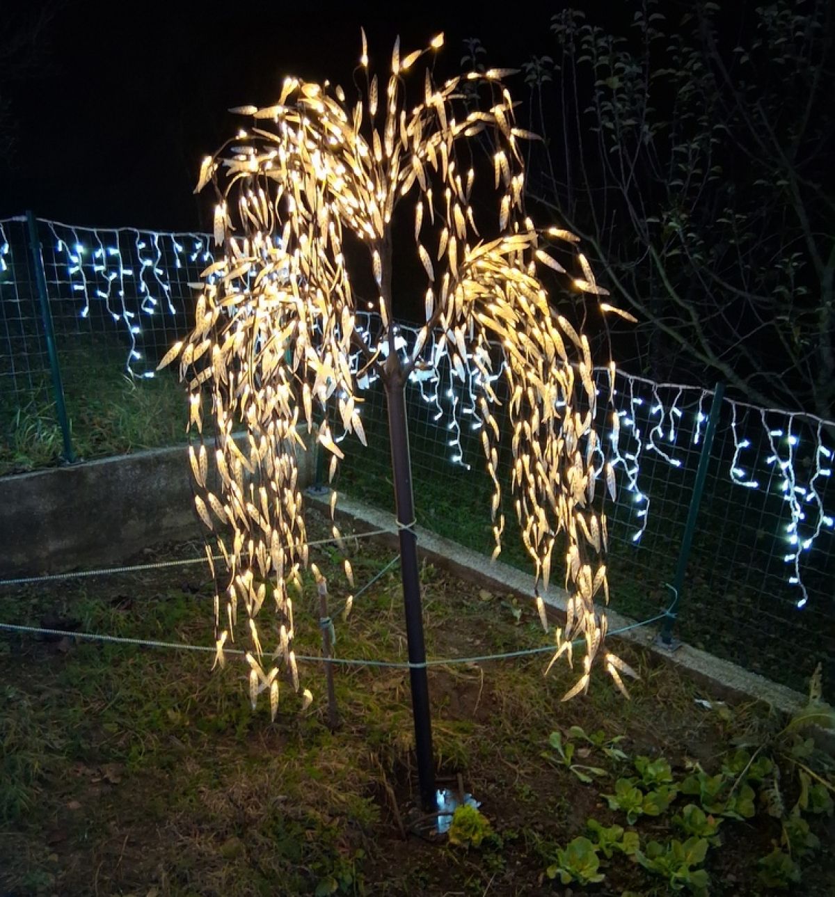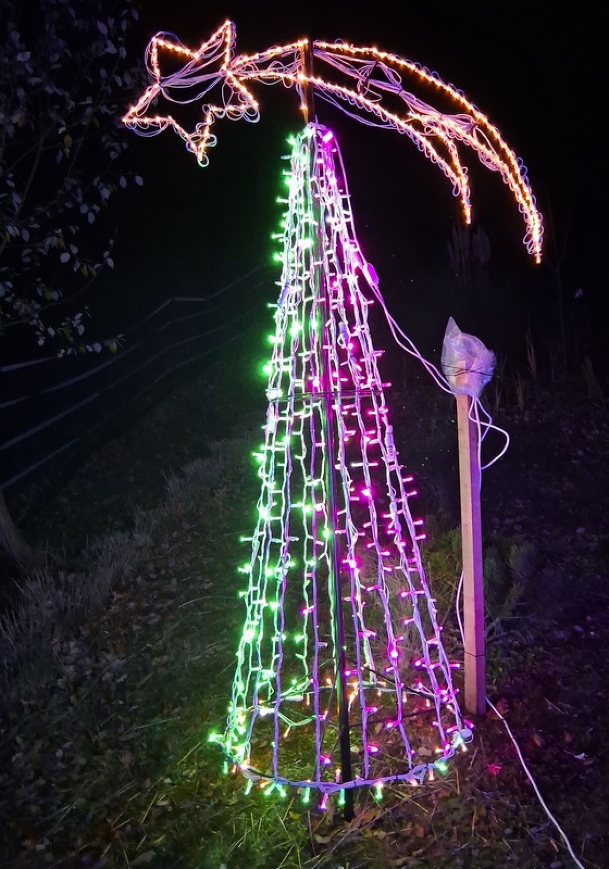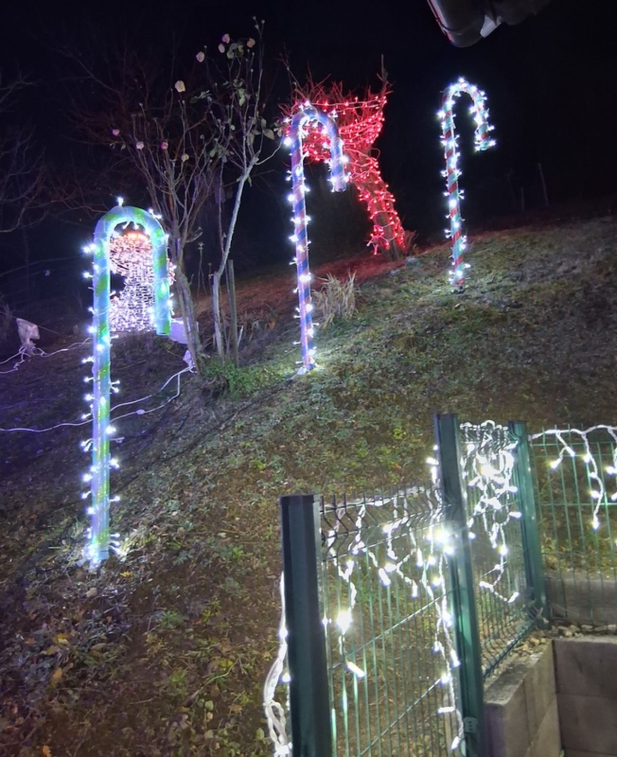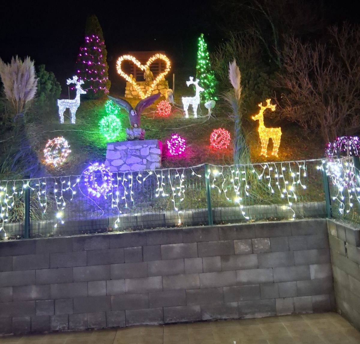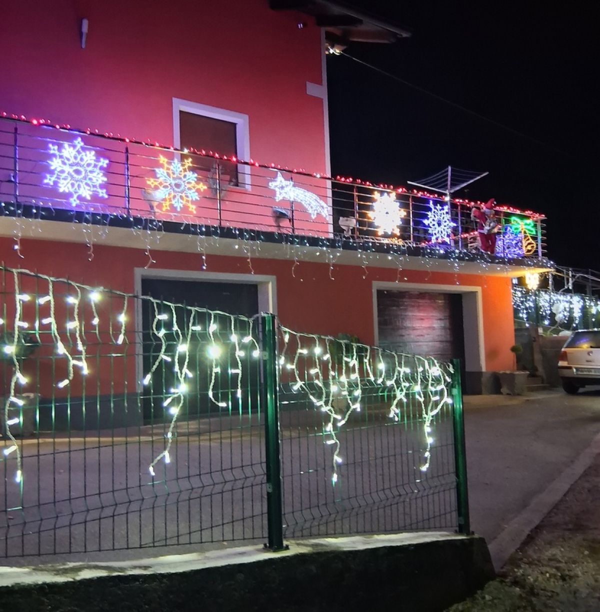 Letos je Franci postavil kar 34.771 lučk, pri njem pa vas pričakajo tudi novosti. Najbolj izstopajo figure, ki jih izdeluje doma. Njegov ponos je 3,20 metra visok snežak, za katerega so porabili 140 metrov železa in 300 metrov svetlobnih verig – skupaj 2.450 lučk. Ogrodje je pomagal izdelati sosed Igor, ki je prispeval tudi roko pri nastanku velikega svetlečega srca in stožca z zvezdo repatico.