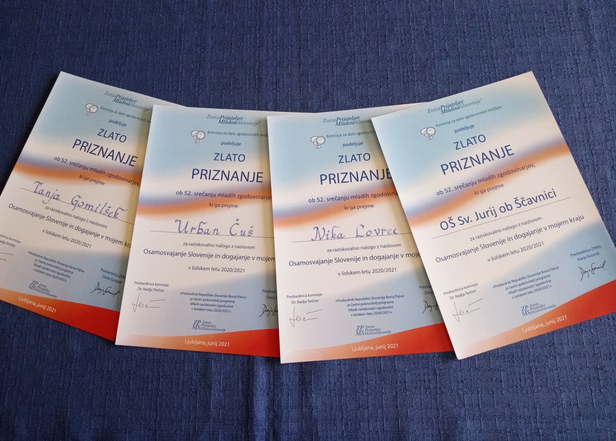 Program se izvaja že 52 let in vrsto let se ga udeležujejo tudi učenci OŠ Sveti Jurij ob Ščavnici, ki posegajo po najvišjih priznanjih. Ob 30-letnici nastanka samostojne in neodvisne države Republike Slovenije so trije učenci iz 9. razreda Uran Čuš, Nika Lovrec in Tanja Gomilšek raziskovali dogodke v času osamosvajanja na območju Gornje Radgone, Radencev in Svetega Jurija ob Ščavnici. "Pri raziskovanju jim je bilo v veliko pomoč gradivo Območnega združenja veteranov vojne za Slovenijo Gornja Radgona, za kar se jim iskreno zahvaljujemo. Za raziskovalno delo so učenci prejeli zlato priznanje," je povedala njihova mentorica Anita Zelenko.