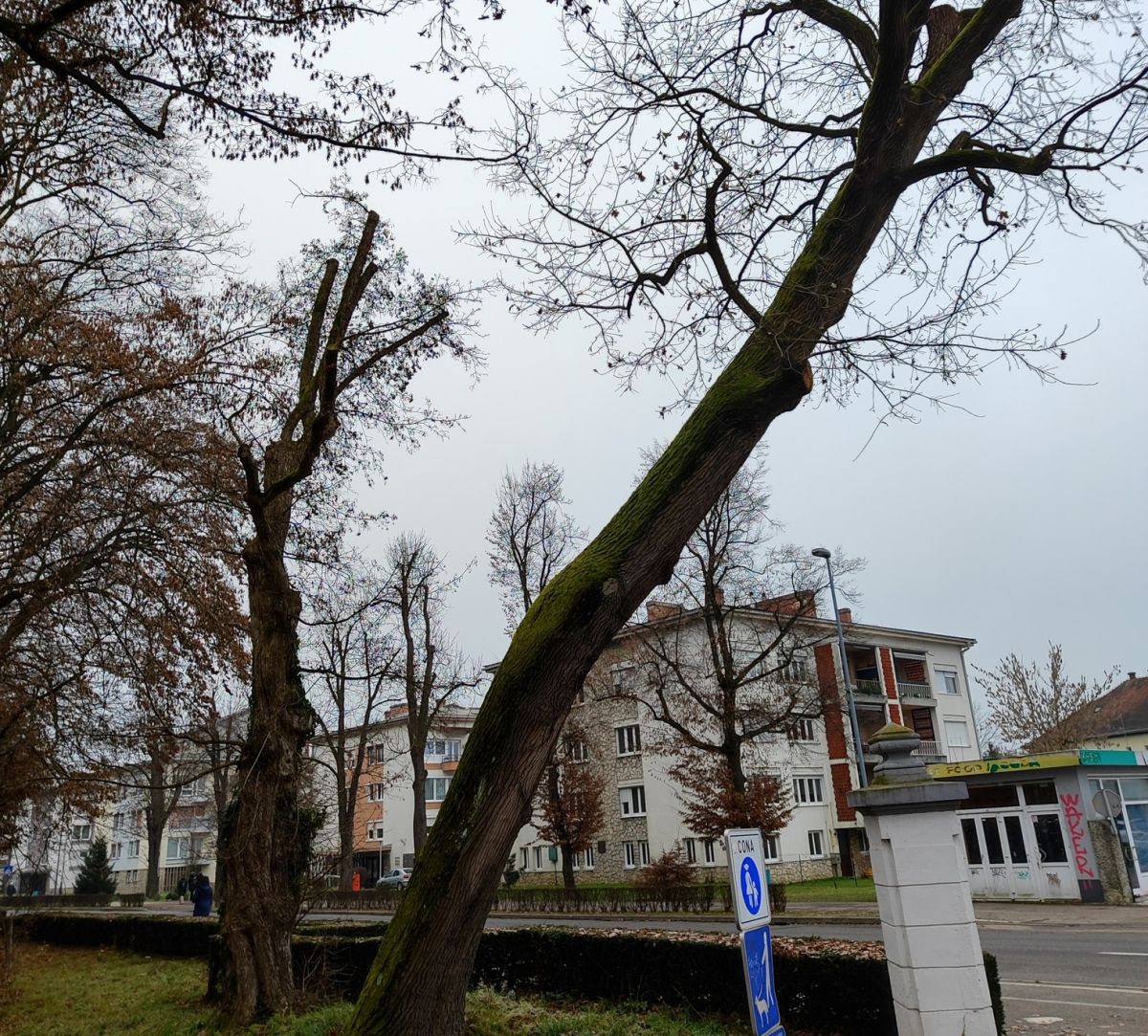 "Na podlagi poročila arboristke ter soglasjem Zavoda za varstvo kulturne dediščina bosta v prihodnjih dneh odstranjena hrast in suhi maklen v mestnem parku ob Ulici Štefana Kovača. Obe drevesi sta nevarni za pešce in promet, saj se nagibata na pločnik in cesto," so pojasnili.