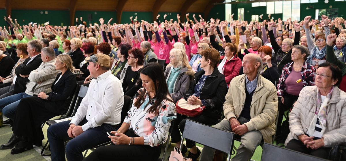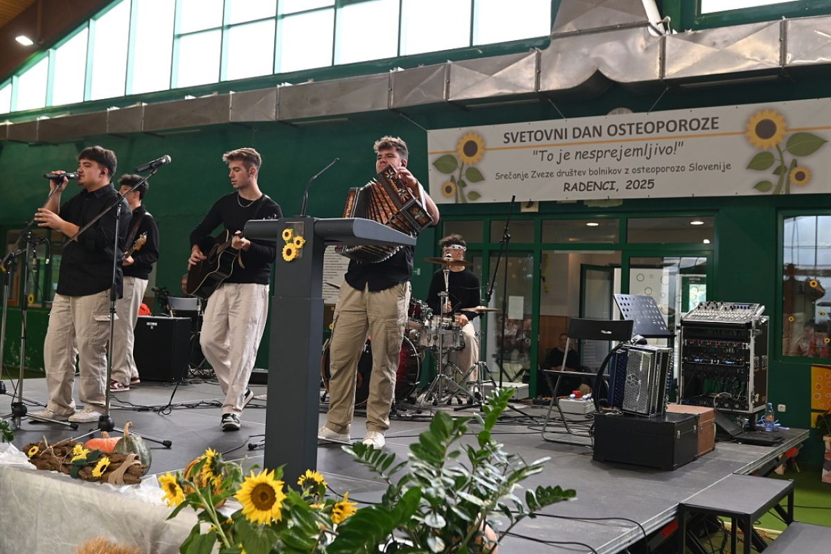 Ob svetovnem dnevu osteoporoze, ki ga obeležujemo 20. oktobra, je v tenis centru Zdravilišča Radenci potekalo srečanje Zveze društev bolnikov z osteoporozo, katerega organizator je bilo Društvo za osteoporozo Pomurja Radenci. Po odigrani skladbi glasbene skupine Tempo je zbrane nagovorila moderatorka prireditve Nika Škof.