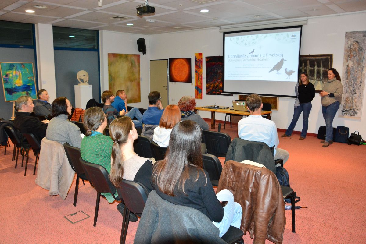 Na predavanju so predstavili tudi ukrepe, ki jih na Hrvaškem izvajajo na območjih z večjim številom gnezdečih parov vran. Mihaela Mesarić iz Međimurske prirode je posebej izpostavila pomen ustreznega ravnanja z odpadki: