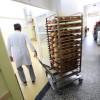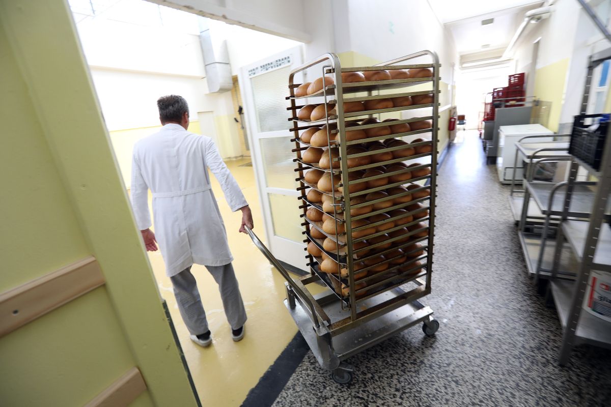 Iz podjetja smo se odpravili proti zaporniški kuhinji in vrtu ob njej. Na poti smo srečali obsojence, ki so ločevali odpadke in hranili debele zaporniške mačke, ki se prosto sprehajajo po zaporu. Pred kuhinjo smo si ogledali vzorno urejen vrt, ki ga obdelujejo obsojenci, običajno jih je pet ali šest. Povedali so nam, da so letos pridelali 800 kilogramov česna in skoraj 1300 kilogramov čebule, seveda pa tudi druge vrtnine. Vrt spada pod okrilje zapora, zato so vrtnine namenjene za prehrano obsojencev. Odpravili smo se še v kuhinjo, kjer je dišalo po sveže pečenem kruhu. Na delu je bilo tedaj 20 obsojencev in nekaj inštruktorjev. Vodja izmene in inštruktor Boštjan Hrenk nam je povedal, da obsojenci, ki delajo v dveh izmenah, vsak dan pripravijo okoli 500 kosil, 200 zajtrkov in 400 večernih obrokov. Za obsojence je obvezno priti le na kosilo. Na dan pripravijo tudi okoli 270 malic za vse, ki v zaporu delajo. Obsojenci lahko zaradi bolezni ali iz verskih razlogov dobijo dietno hrano. V pekarni vsak dan spečejo okoli 150 kilogramov belega in polbelega kruha ter žemljic. Iz kuhinje smo se odpravili na polodprti oddelek Slovenska vas, ki je le nekaj sto metrov oddaljen od zaprtega dela zapora. Tukaj lahko obsojenci delajo v okviru JGZ Rinka, torej v kmetijski dejavnosti ali pri vzreji konj. V okolici zapora na Dobu ima namreč JGZ Rinka v najemu od Sklada okoli 170 hektarjev zemlje.