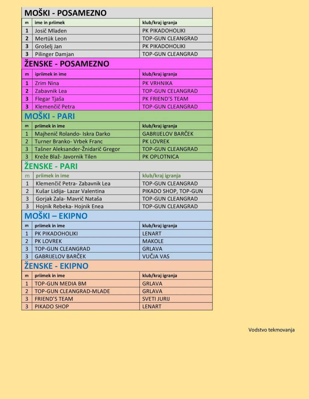 Največ uspeha so imele ekipe iz regija Vzhod - Pomurje. Posebej so se izkazali igralci in igralke iz ŠD Strelec Grlava oziroma ekipe Top-Gun Cleangrad.