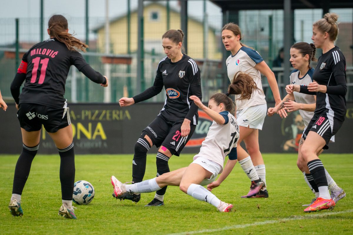 Na začetku drugega dela so Ljubljančanke, ki so se na tekmi dobro upirale gostiteljicam, izenačile po lepi kombinatorni akciji, ki jo je s strelom z leve strani sklenila Mirjam Kastelec in se na prvem mestu lestvice strelk izenačila z Ano Milović - 1 : 1. Obe imata zdaj po 45 zadetkov.