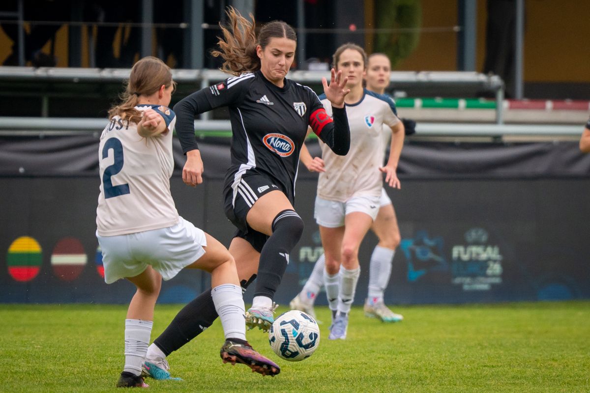 Črno-bele so povedle že v 5. minuti, ko je Lea Dolinar izkoristila nepazljivost vratarke gostov Lucije Grad, ki je stala precej daleč zunaj svojih vrat, in z merjenim strelom z razdalje poslala žogo v nebranjeno mrežo - 1 : 0. To je bil tudi izid prvega polčasa.