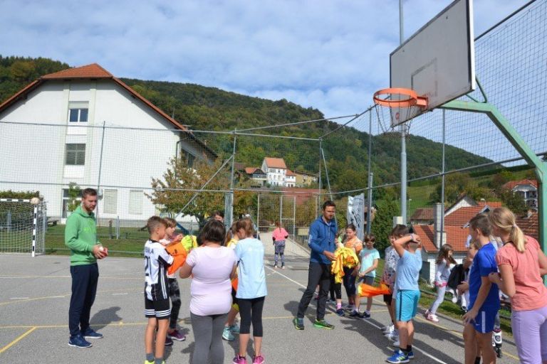Za mlajše učence naše šole je pripravil poligon v šolski telovadnici, učenci 5. in 6. razreda pa so se pomerili v igri na zunanjem igrišču. Klemen je pohvalil teoretično in praktično znanje naših učencev. Po obisku pri nas je že odhitel na trening v Krško.