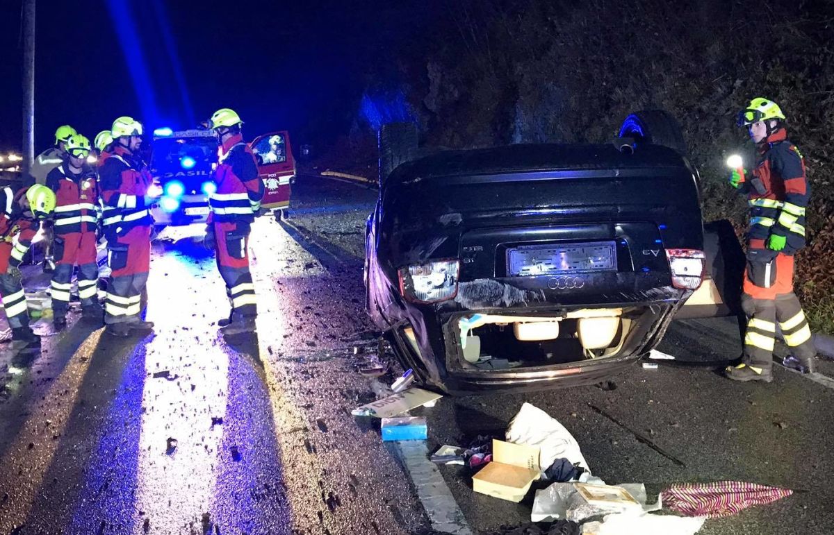 V večernih urah so idrijske gasilce obvestili o prometni nesreči med Spodnjo Idrijo in Cerknim. 33-letna voznica, ki je sedela za volanom osebnega avtomobila znamke Audi, je vozila iz Straže v smeri proti Spodnji Idriji. V preglednem desnem ovinku je zapeljala preblizu roba vozišča in trčila v varnostno ograjo. Vozilo, je potem ko ga je odbilo v skalnato brežino ob cesti, pristalo na strehi. Voznico, ki se je lažje poškodovala, so prepeljali v ljubljanski klinični center, so sporočili goriški policisti.