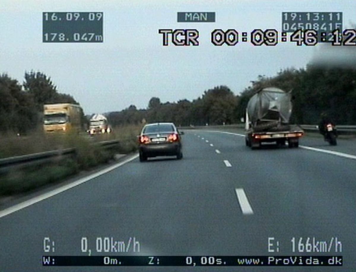 Policisti so voznika, 42-letnega Novomeščana, med prekrškom ujeli pri Povirju, njegovo hitrost pa so z avtomobilom, ki ima vgrajen videonadzorni sistem, merili na razdalji slabih 3000 metrov. Preizkusili so ga tudi z alkotestom, ki pa ni pokazal prisotnosti alkohola. Dobil je plačilni nalog v višini 1200 evrov in devet kazenskih točk.
