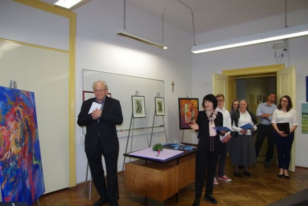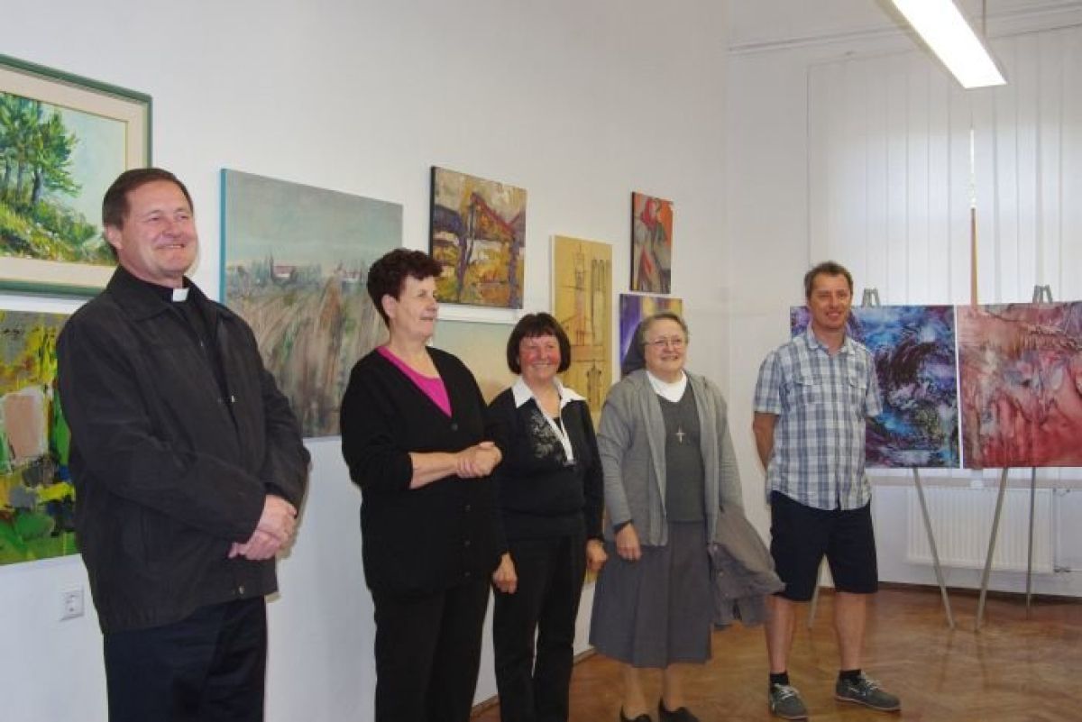 Predsednik Škofijske Karitas Novo mesto Ciril Murn je včeraj v Baragovem zavodu odprl likovno razstavo z naslovom Umetniki za karitas.