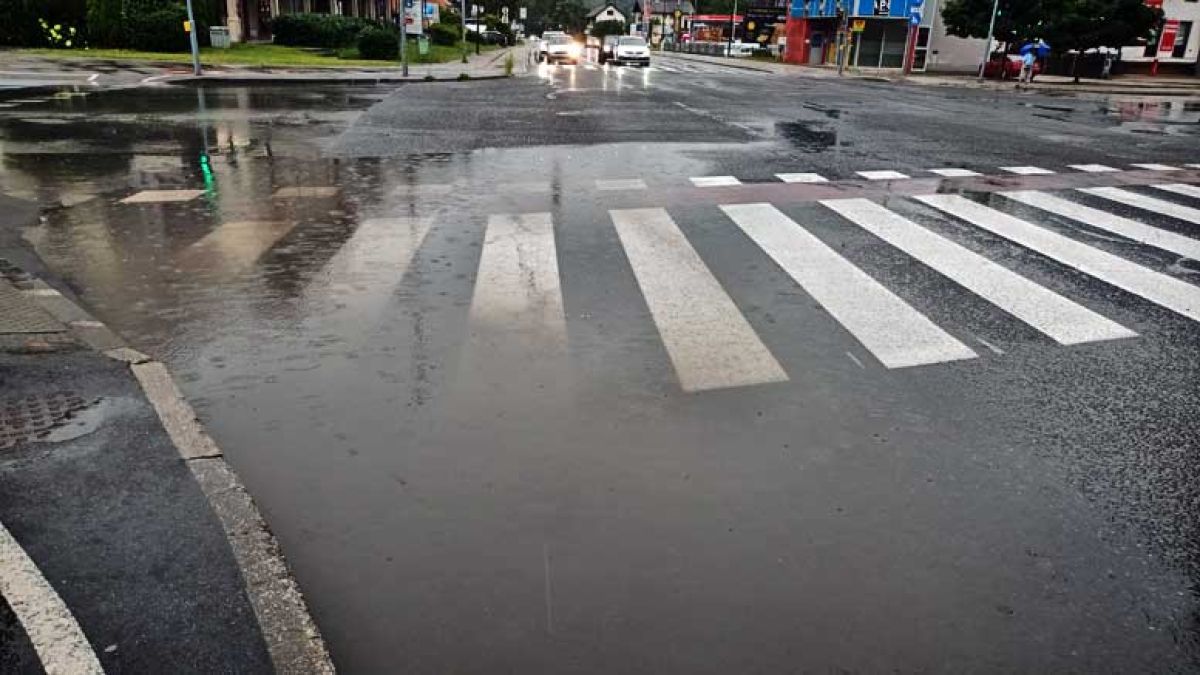 Če pa je za prehod čez cesto treba imeti obute škornje, je le malo drugače. Le nekaj let je, odkar so prenovili Staro Velenje in tudi veliko križišče s Foitovo in Partizansko cesto. Odtok ob prehodu za pešce pa se ob večjem dežju redno zamaši in poplavi prehod skoraj do polovice cestišča. Bo kdo od pristojnih ukrepal?