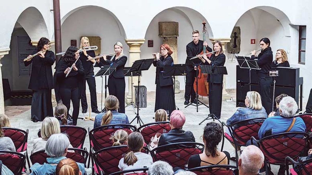 Flavtastičnih 7 sestavlja sedem akademskih flavtistk in profesoric flavte iz Velenja in okolice, ki so se združili iz želje po skupnem muziciranju – Neva Berke, Nina Fajfar Baša, Agata Gojkošek, Diana Štih, Mojca Ušen Tkalčec, Ana Zajc Smolčnik in Špela Zamrnik. Agata Gojkošek, tudi skladateljica, je v zadnjem času napisala kar nekaj skladb in priredb za flavto v različnih sestavih. Njena najnovejša skladba »Circus Flautasticus« je bila napisana za Slovenski orkester flavt, katerega članice so vse flavtistke. Razširjeno zasedbo so dopolnili glasbeniki Nina Verboten, Leon Cesarec, Tomaž Smolčnik in Lenart Gojkošek (tolkala). S klavirjem, kontrabasom in tolkali so popestrili družino flavt, ki jo sestavljajo pikolo flavta, koncertna flavta v C-duru, alt flavta in bas flavta. Ambient Velenjskega gradu je s svojo akustiko lepo poudaril zvok flavte in občinstvo je doživelo čudovit majski večer.