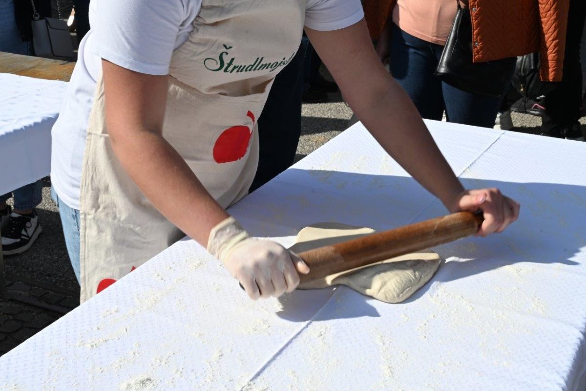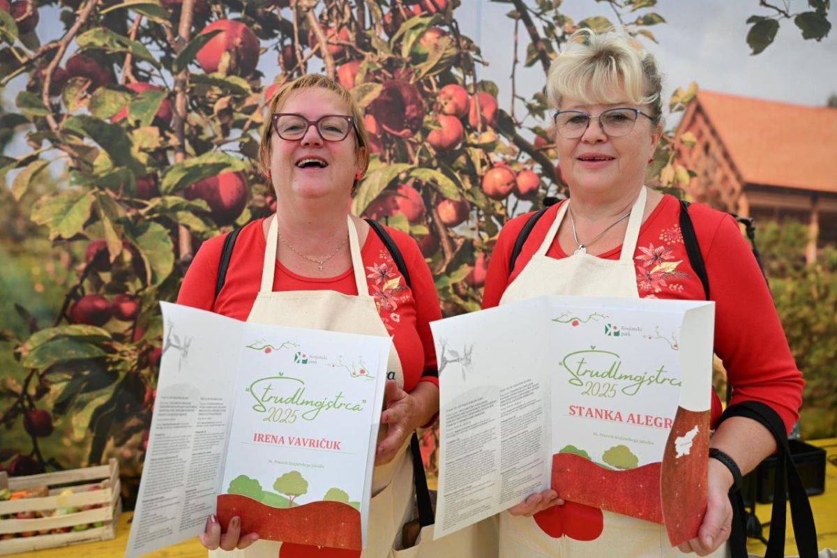 V tekmovanju v pripravi najboljšega jabolčnega zavitka sta lovoriko osvojili Stanka Alegro in Irena Vavričuk iz Društva kmetic Ajda ter prejeli naziv Štrudelmojstrici 2025.