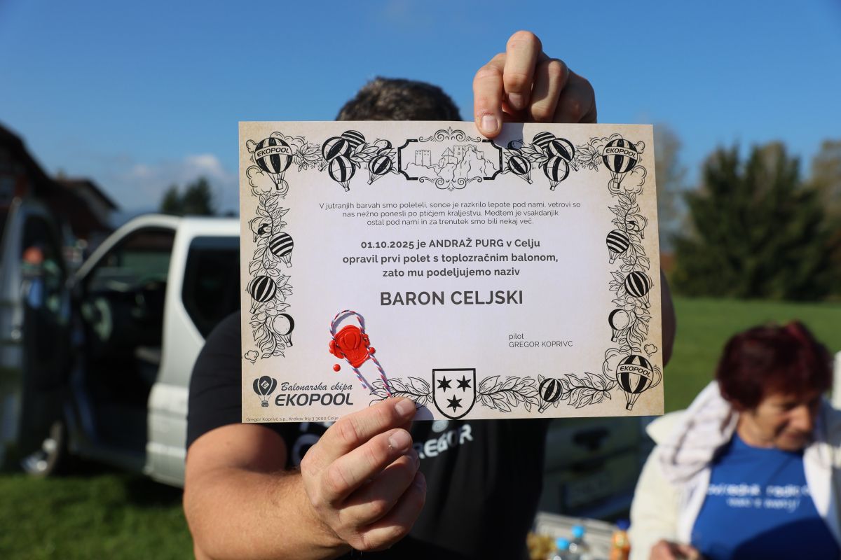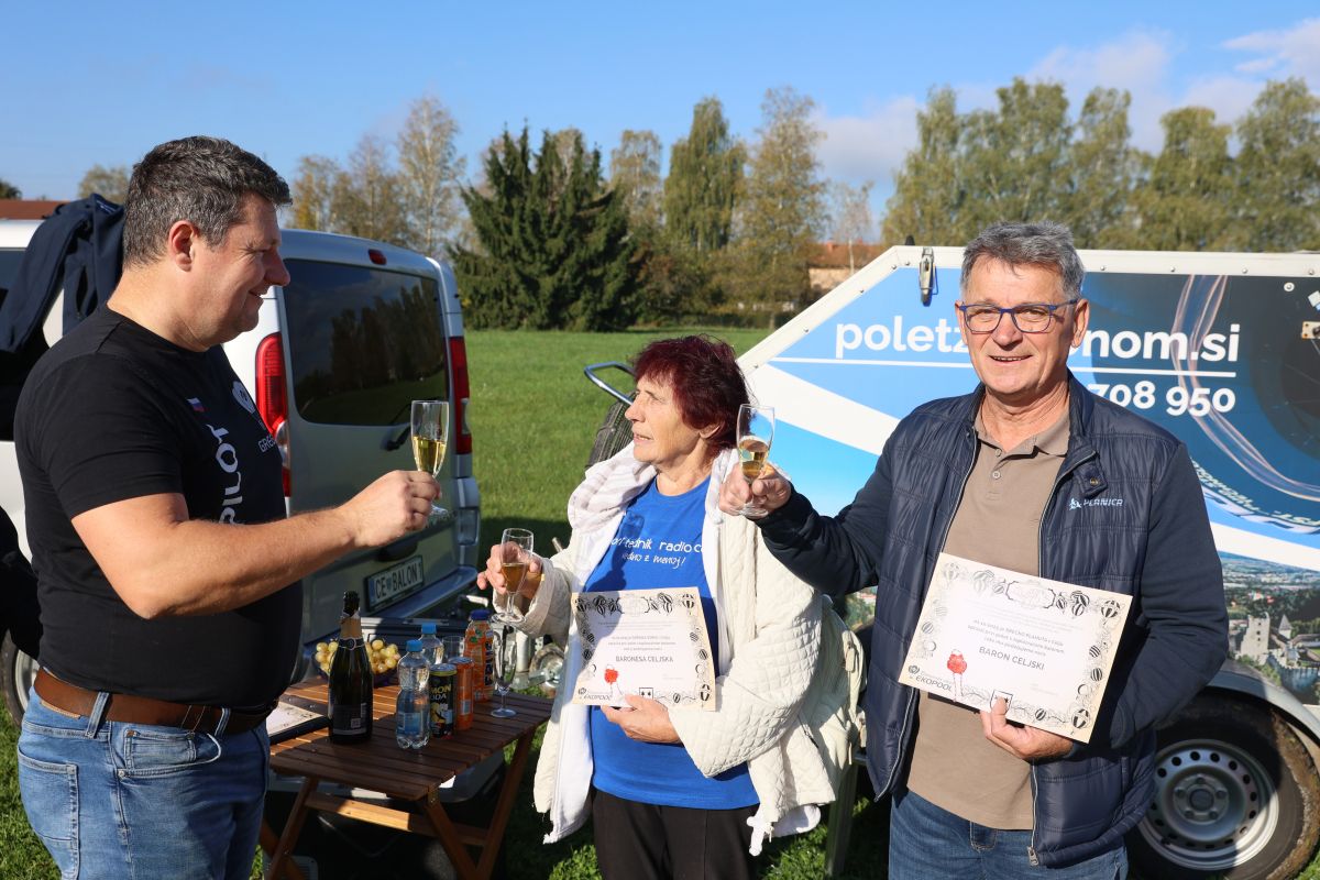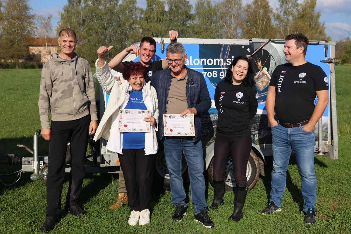 Za prvi polet z balonom sta Darinka in Srečko dobila tudi posebno diplomo, prav tako so ju tudi krstili. »Na krstu sem bila čisto solzna. Izkazali so mi takšno pozornost, ki je nikoli ne bom pozabila,« je čustveno povedala nagrajenka.