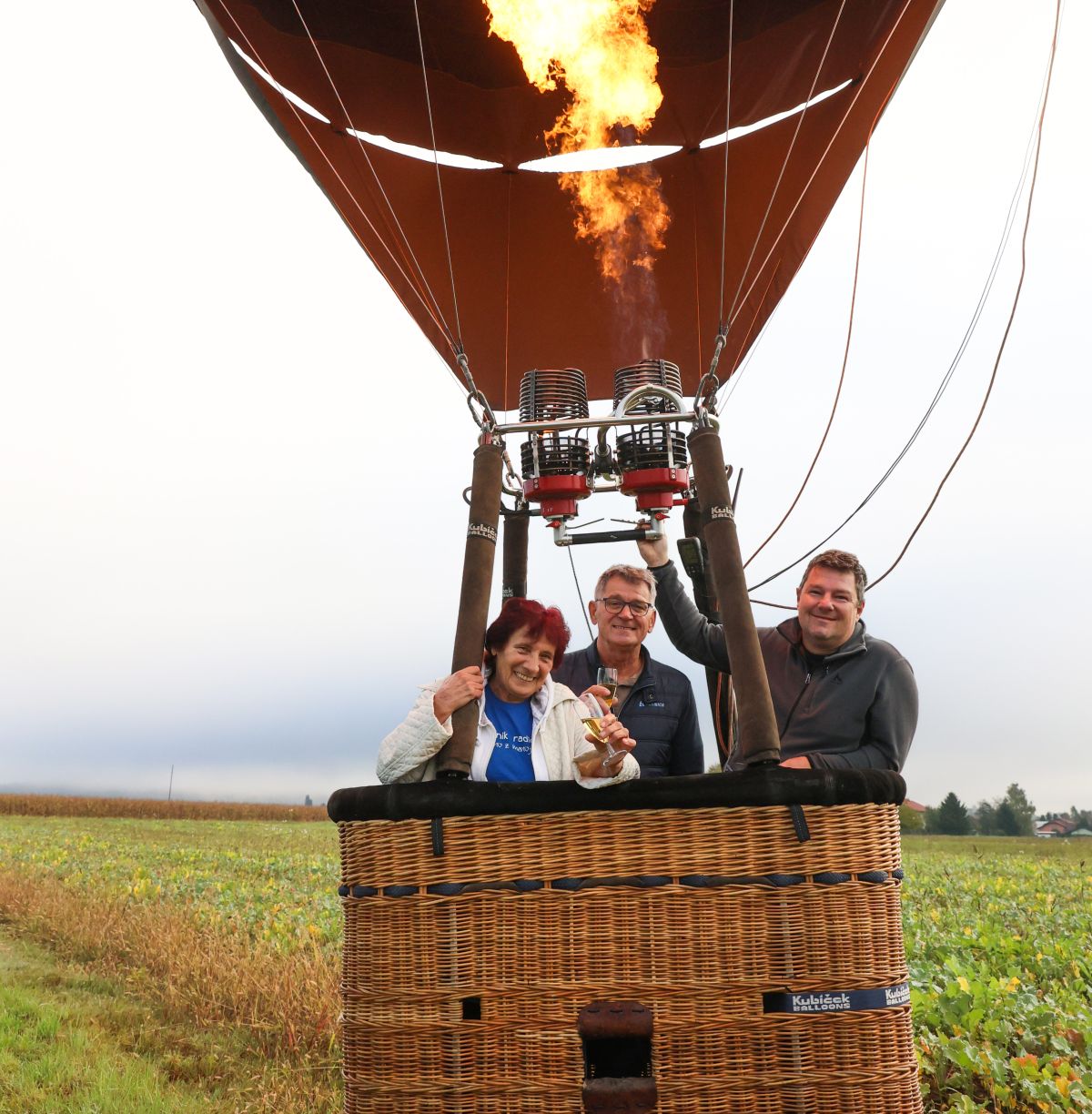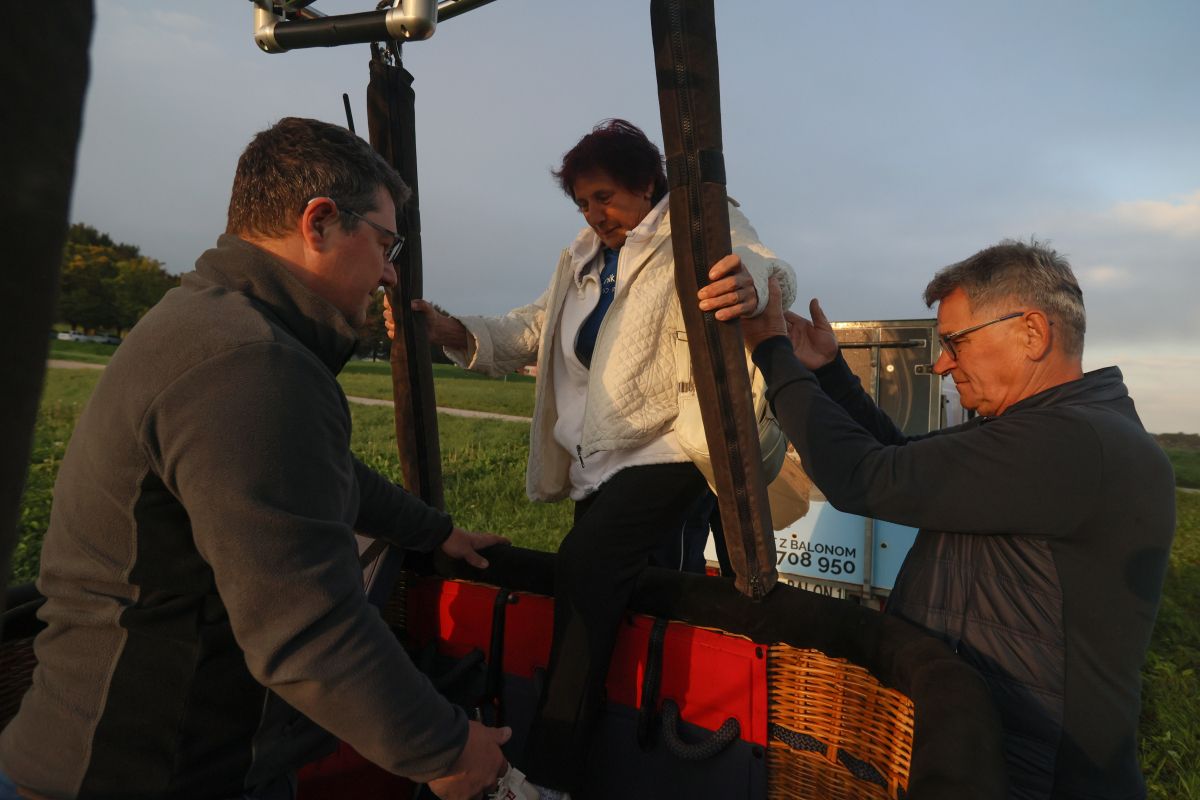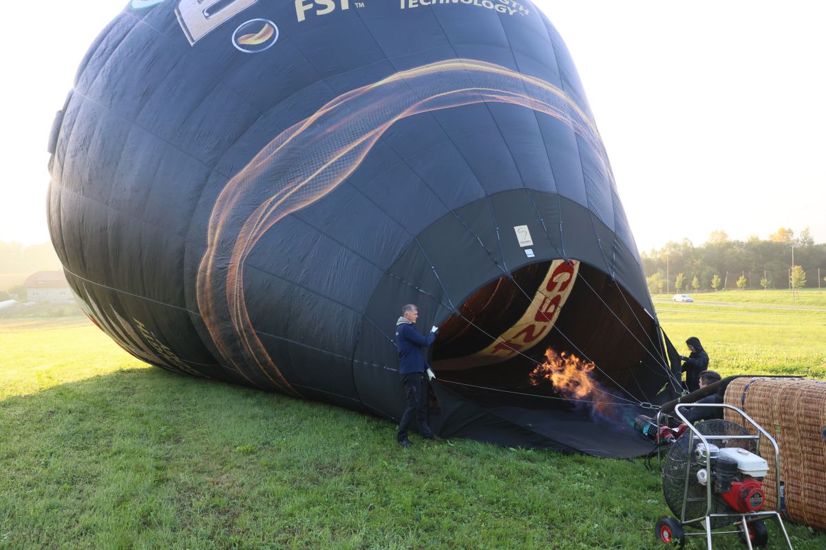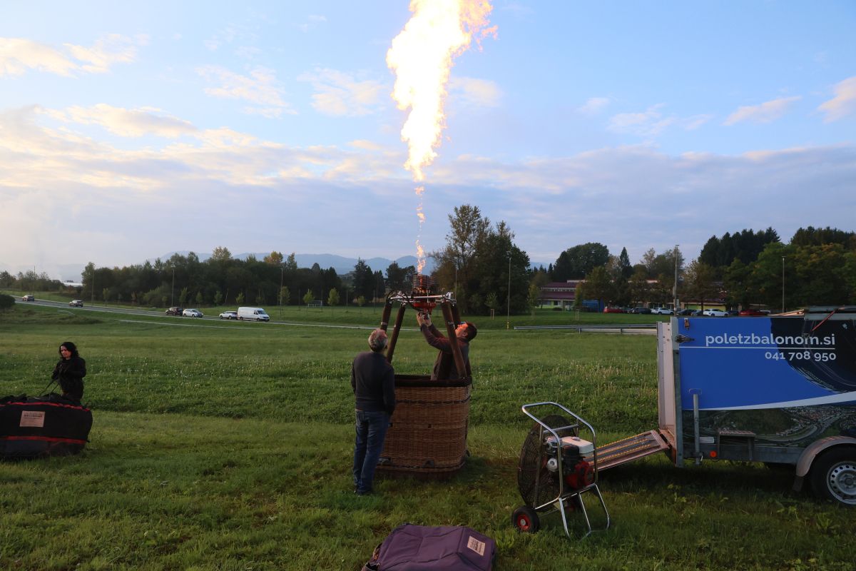 Glede na nakazano smer vetra so se nato skupaj odpeljali na travnik nasproti Osnovne šole Frana Roša, kjer so z zemeljsko ekipo sestavili in napihnili balon. Sledilo je vkrcanje v košaro in že so se odlepili od tal.