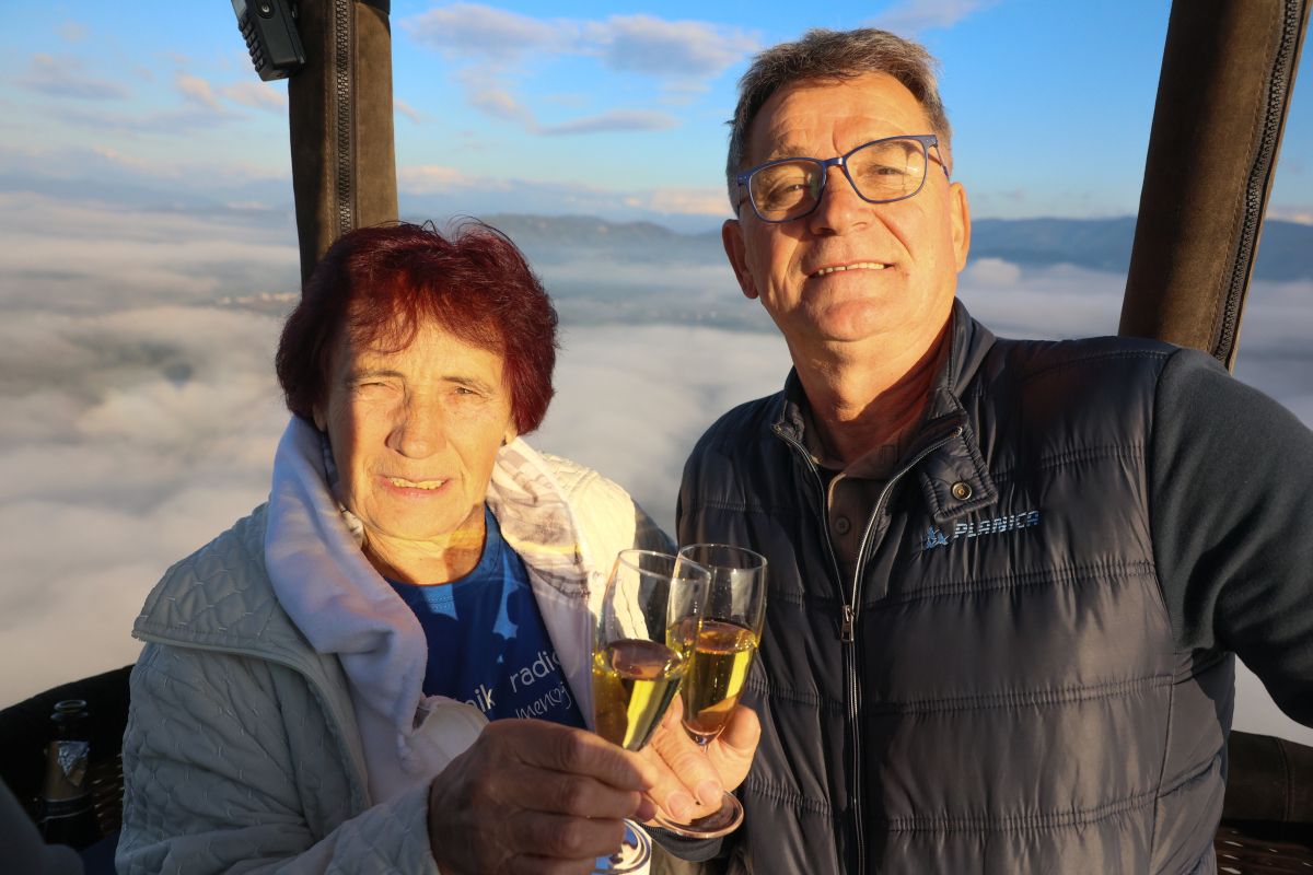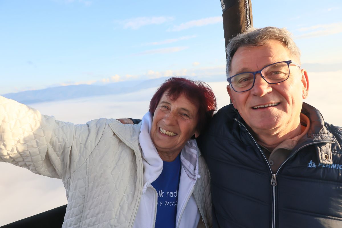 Sreča se je tokrat nasmehnila dolgoletni naročnici Darinki Zorko s Polul pri Celju, ki je minuli teden na nepozabno doživetje nad oblaki povabila soseda Srečka Plahuto. Kot sta dejala nagrajenca, tega neverjetnega poleta z balonom še dolgo ne bosta pozabila.
