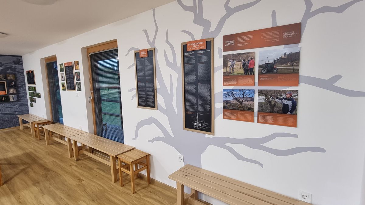 Kozjanski park je na Gradišču pri Podsredi leseno stavbo uredil v sodoben interpretacijski center, obdan z visokodebelnimi travniškimi sadovnjaki.